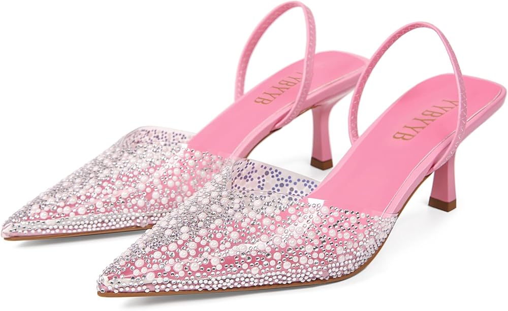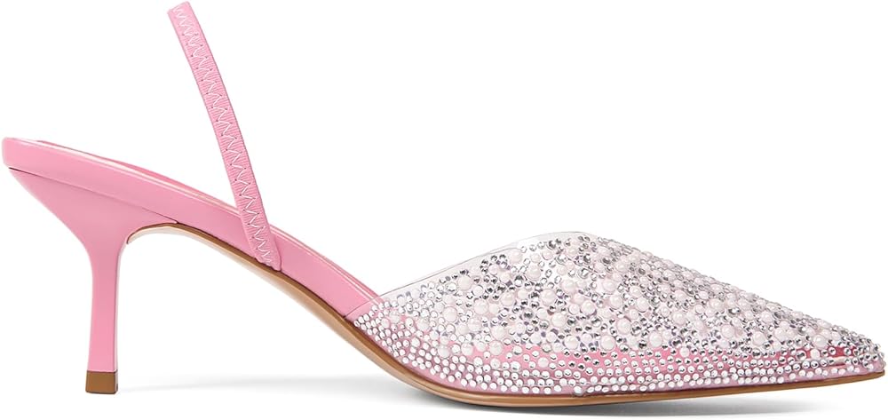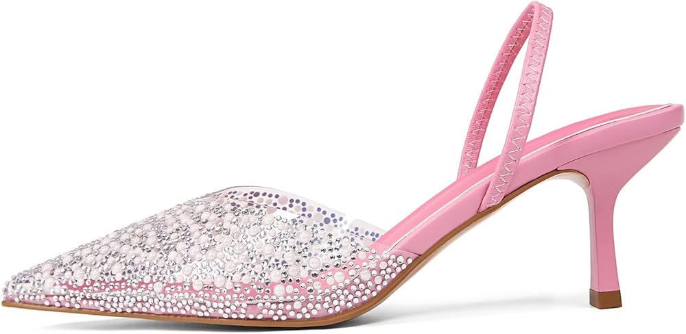 Step into sophistication with our chic Women's Slingback Kitten Heels. Designed for the modern woman who values both style and comfort, these heels feature a refined pointed toe closed design that effortlessly elevates any outfit, be it for work, dinner, or special occasions. The comfortable 6.5CM kitten heel offers a subtle lift, providing just the right height to enhance your posture while still being easy to walk in. Ideal for all-day wear, these heels let you transition from day to night with confidence and ease. Our stylish open back design not only adds a playful touch but also allows for effortless slipping on and off, enhancing breathability and ensuring your feet stay cool throughout the day. Experience luxury with the premium leather insole that offers soft cushioning, helping to prevent discomfort even during long hours of wear. Your feet deserve the best, and these heels deliver both comfort and style. What sets these kitten heels apart is the eye-catching transparent upper, beautifully adorned with a stunning mix of sequins and pearls. This unique design element adds a touch of glamour and creativity, ensuring that you'll turn heads wherever you go. Perfect for pairing with dresses, skirts, or tailored trousers, these slingback kitten heels are an essential addition to your wardrobe. Don't miss out on the opportunity to own this beautiful blend of grace and comfort—order your pair today and step into elegance!