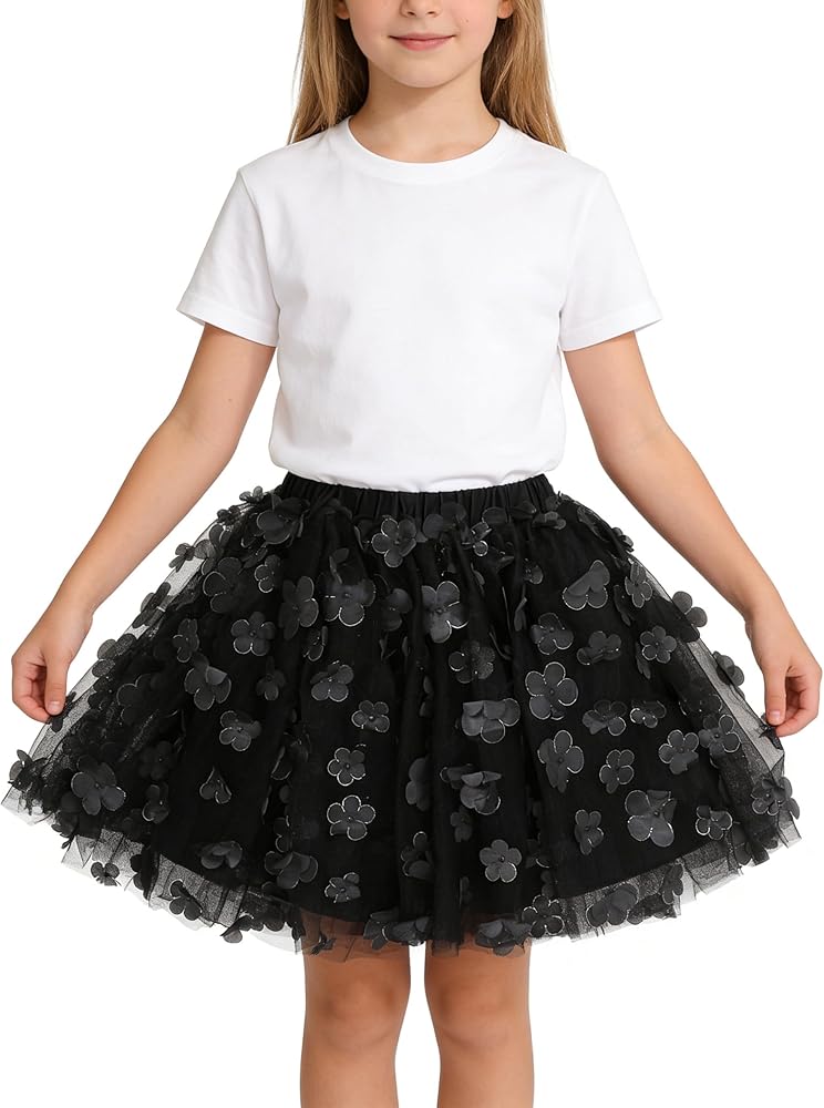Design -- A vibrant flower short skirt, features a delicate two-layer tulle construction. The top layer is adorned with exquisite floral patterns, adding a touch of cute and sophistication to the skirt. This skirt combining fashion and cuteness, pairs effortlessly with a variety of tops and shoes, making it easy to create a range of stylish looks.