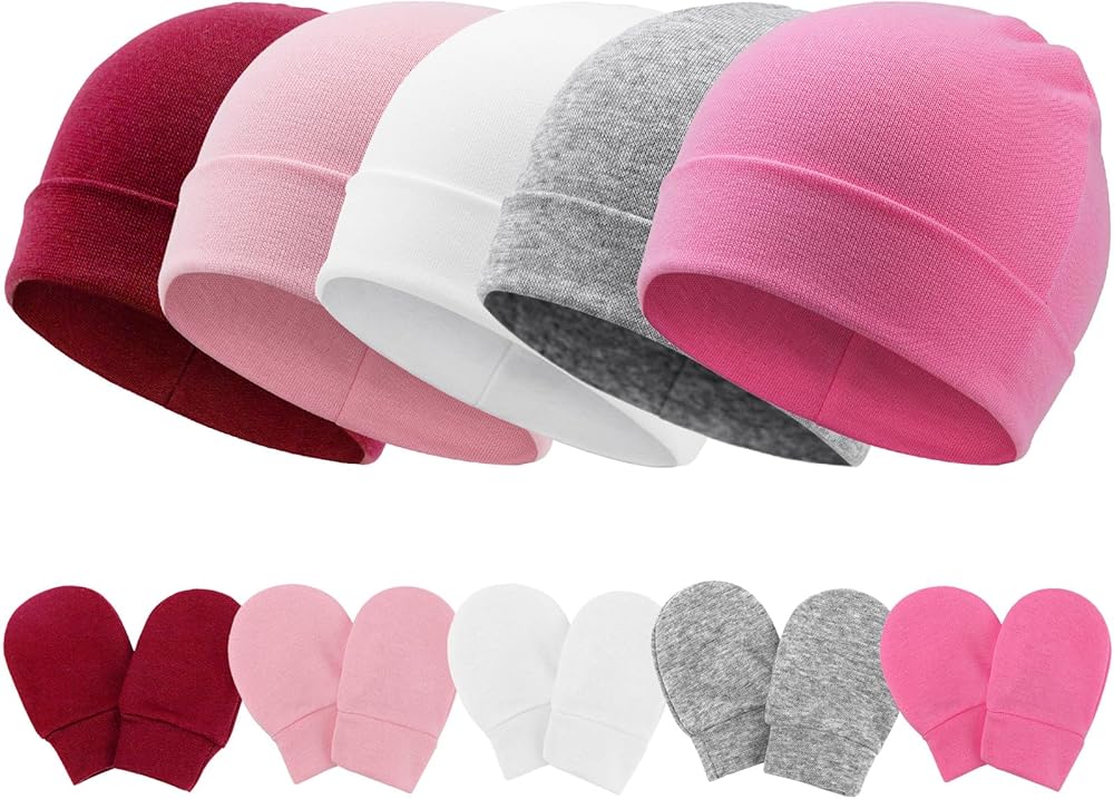 Thoughtful Design - Our baby hats are designed with functional rolled edges, you can roll up and down the edges of your toddler's hat to change the size and style of your baby's hat. Cotton mittens with elasticized wrists are designed for easy on and off, keeping the mittens snug on your baby's little hands.