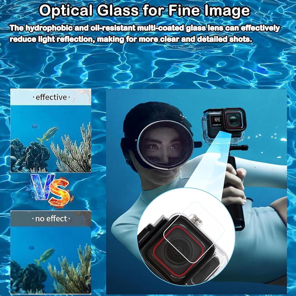 【Dive Filters & Anti-Fog Inserts】The dive filter is carefully crafted from high-quality optical materials to ensure the clarity and color reproduction of images when shooting underwater. It not only protects the camera lens from scratches, but also filters out impurities in the water to help you capture more realistic and vivid images. In addition, the kit also comes with an anti-fog insert that effectively prevents water vapor from condensing on the surface of the lens, ensuring that the image is always clear