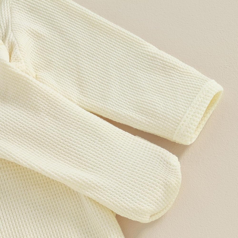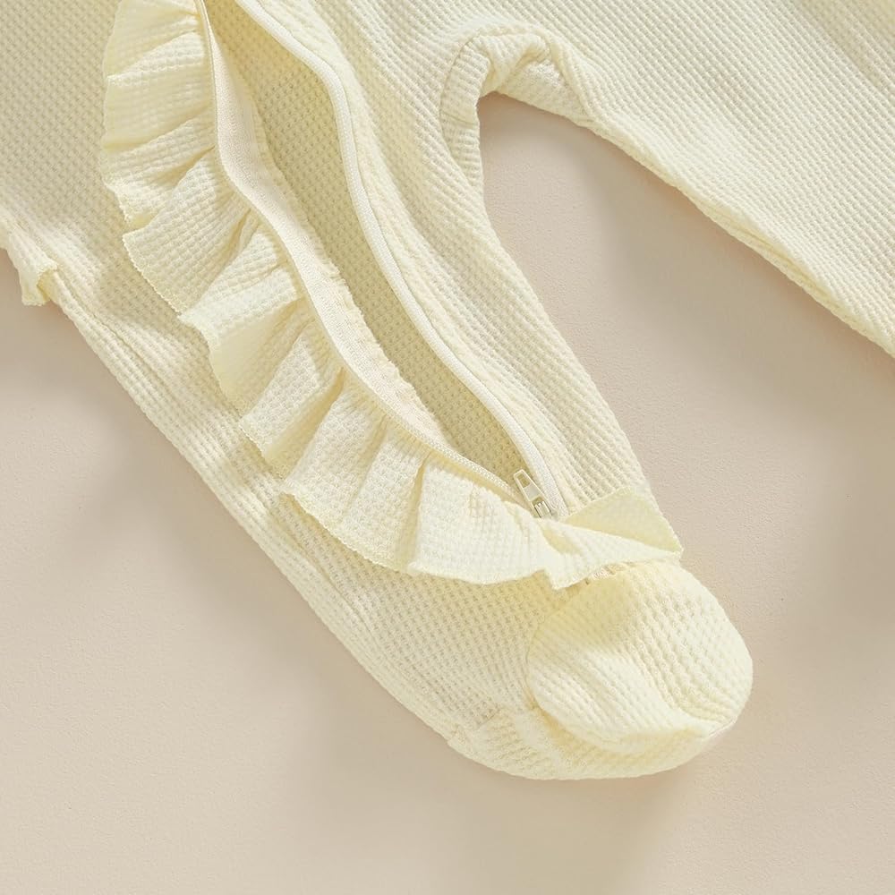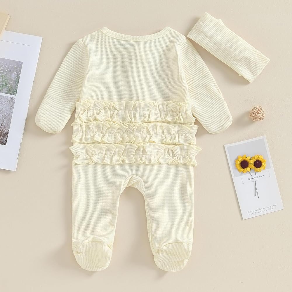 Infant Girl Footies Rompers Solid Color Frills Crew Neck Long Sleeve Baby Jumpsuits Newborn Clothes Bodysuits with Headband