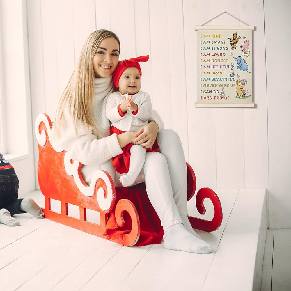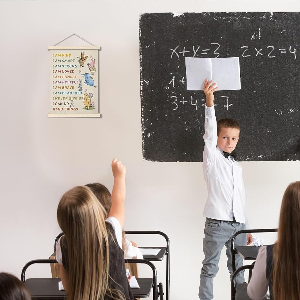 🌟You Will Get: a pieces 12 x 16 inches Winnie Alphabet Poster Hanger Frame is ready to hang, ready to hang on the wall of the baby's room right out of the box. It does not take up space because it can be rolled up to store
