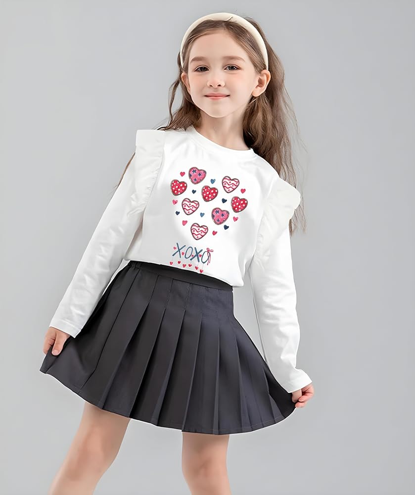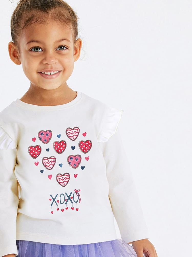 OCCASION I Valentine Day Toddler Girls Crewneck Ruffle Shirt. Vday little girls long sleeve tee shirts for school and play in the dailywear or can be used as play-wear at home in winter or with Coat, Blouse, Cardigan, Jeans, Jogger Pants, Sweater, Jacket or Hoodie. Ideal for daily wear, holiday, outdoor, home wear, camping, hiking, sport, cosplay, travel, etc.