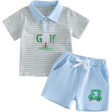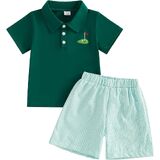 Toddler Baby Boy Summer Outfits Golf Pattern Button Turn Down Collar Short Sleeve Shirt with Shorts 2 Pcs Set