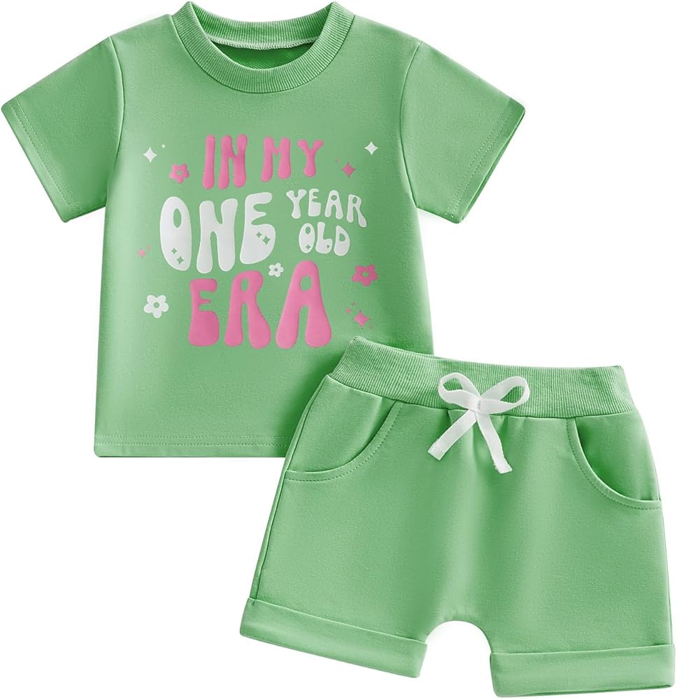 Baby Girl Summer Clothes Letter Print Short Sleeve Round Neck T-Shirt with Camouflage Pattern Shorts