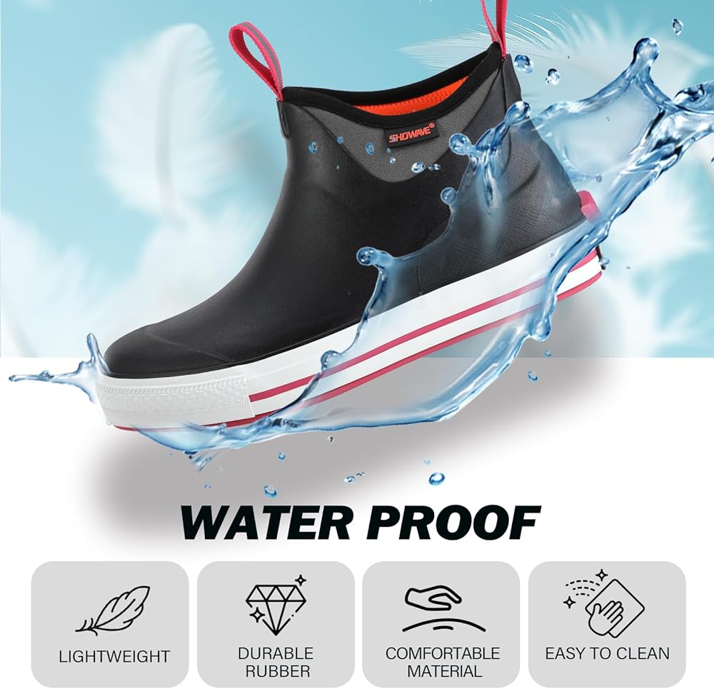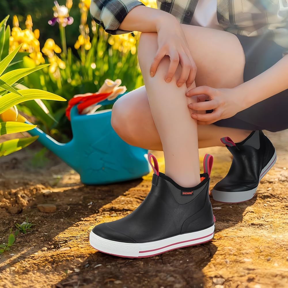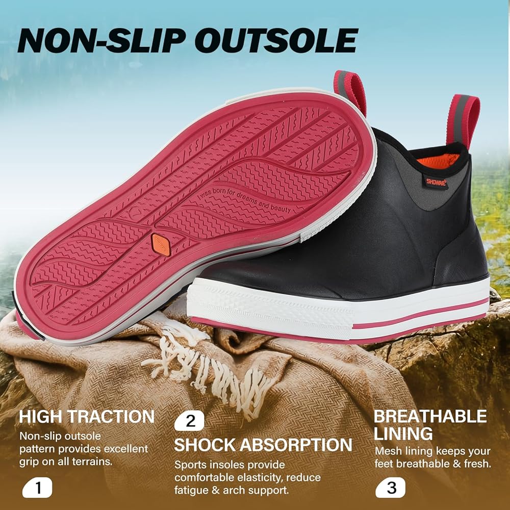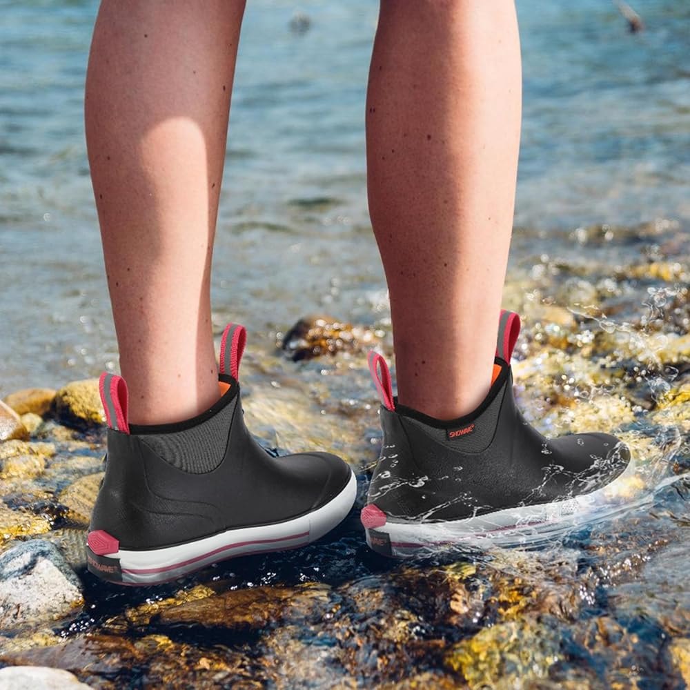 All-Weather Protection & Comfort: These women's deck rain boots designed with 100% waterproof construction and 5mm neoprene, keep your feet dry and warm in all conditions. Whether it's rainy weather, fishing trips, or outdoor adventures, the boots provide excellent waterproofing, shock absorption, and heat retention, ensuring all-day comfort.