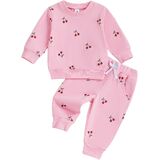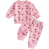 - Super Cute Fruit Strawberry Print, Pullover Long Sleeve Sweatshirt Tops + Casual Sweatpant 2 Piece Sets, Infant Toddler Baby Girls Fall Winter Fashion Clothes Outfits