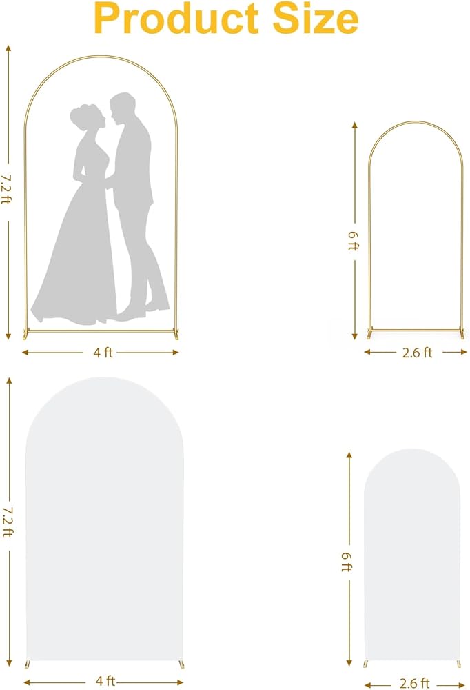 【6 Pcs Arch Backdrop Stand and Cover】GRENTY arch backdrop stand and cover set includes 3 gold wedding arch frames paired with 3 white arch backdrop covers,The set includes three arch sizes: 7.2 x 4ft, 6.6 x 3.6ft, 6 x 2.2ft. This versatile set is sure to meet all your decorating needs.