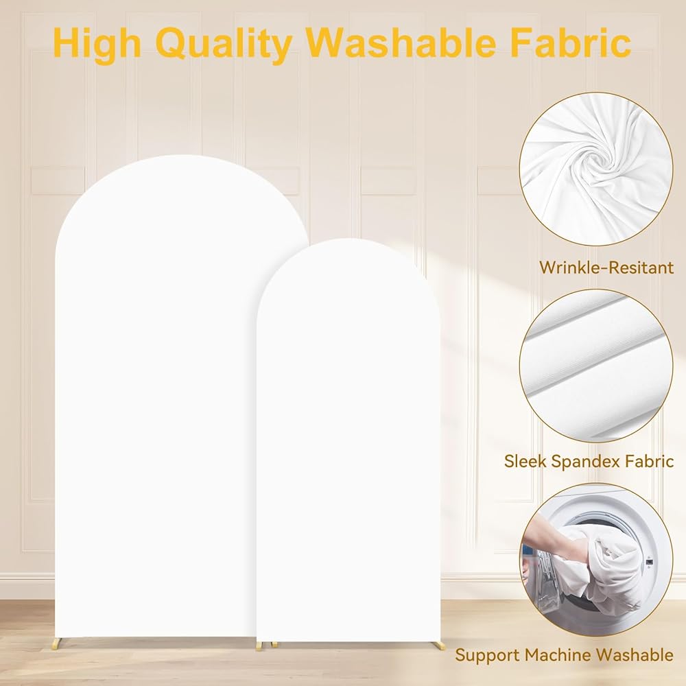 【Wrinkle-Resistant and Easy to Clean Backdrop Cover】This backdrop stand set includes 3 white spandex fitted arch covers made from premium stretchable fabric. The snug fit ensures a smooth, wrinkle-free appearance, while the elegant color adds sophistication and creates a romantic atmosphere for your event. The arch cover is machine washable, making it easy to clean and reuse.