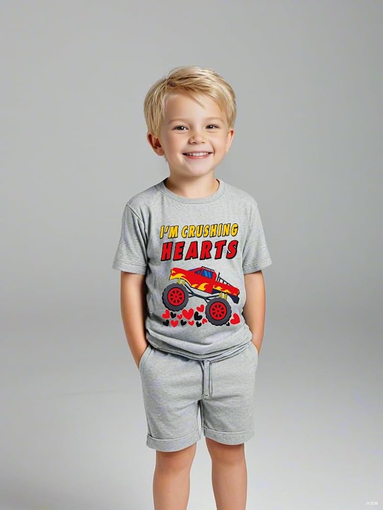 PRACTICAL UNIQUE DESIGN I Boys Valentine's Shirts with Cool Off-Road RC Monster Truck I'M CRUSHING HEARTS, Loads of Love From Various Machines Like Tractor Truck, Excator, I Dig You Digger, Transmitting Love Signals Robot. Girl's Valentine's Shirts Series About Love of Watercolors Hearts XOXO, Watercolor Gradient Hearts, Love Shape I'm Donut About You, Hawaiian Flamingos, and Mermaid Watercolor Colored Scales.