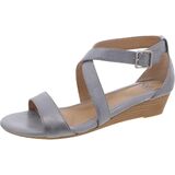 wishbone cross-band upper, sliver wedge heel, midheel, leather upper, leather lining, buckle adjustability, flexible rubber outsole