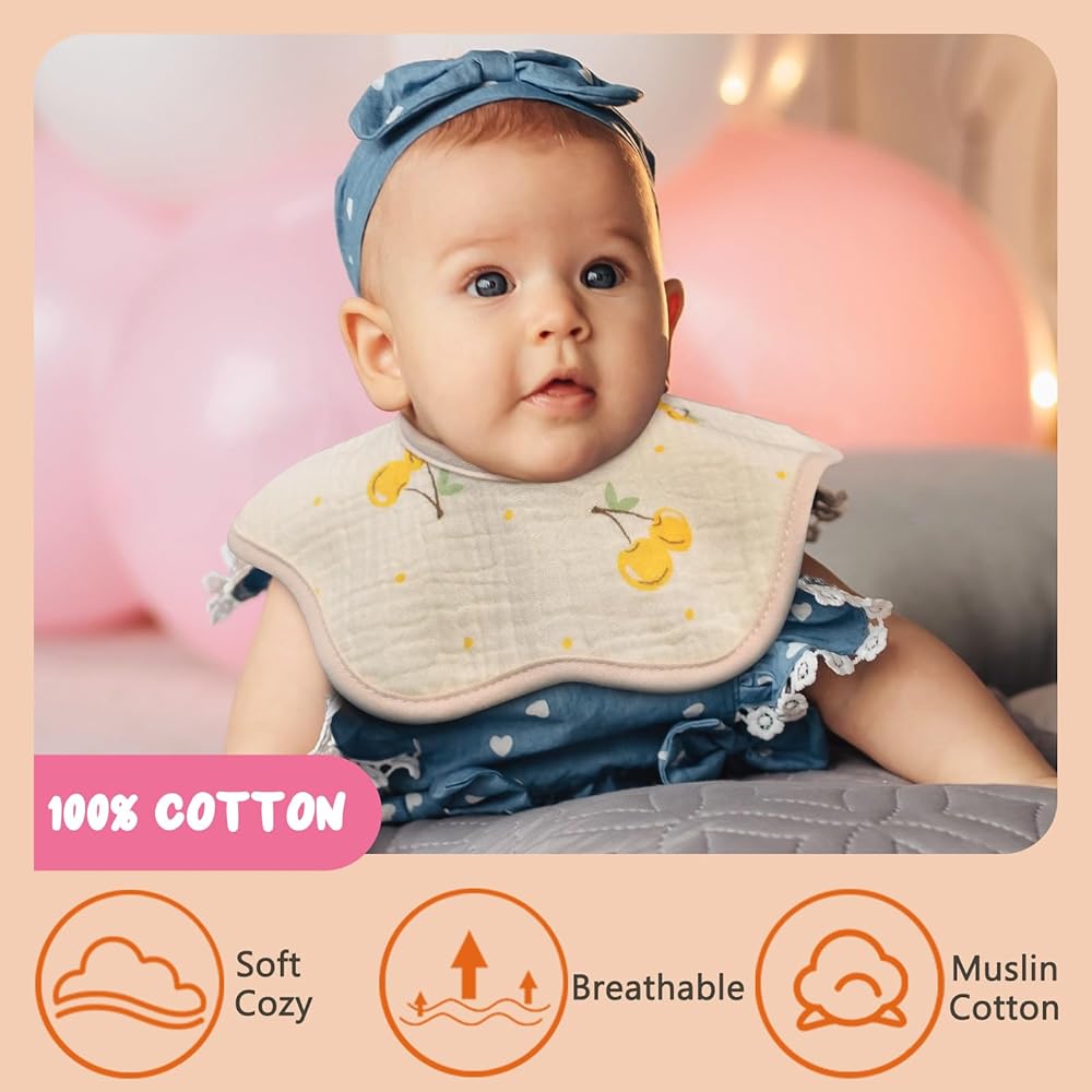 Premium Craftsmanship: Our baby bibs are meticulously handmade with care and precision, using 4 layers of 100% muslin cotton. This premium quality material ensures superior softness, breathability, and durability, making them perfect for your little one's delicate skin.