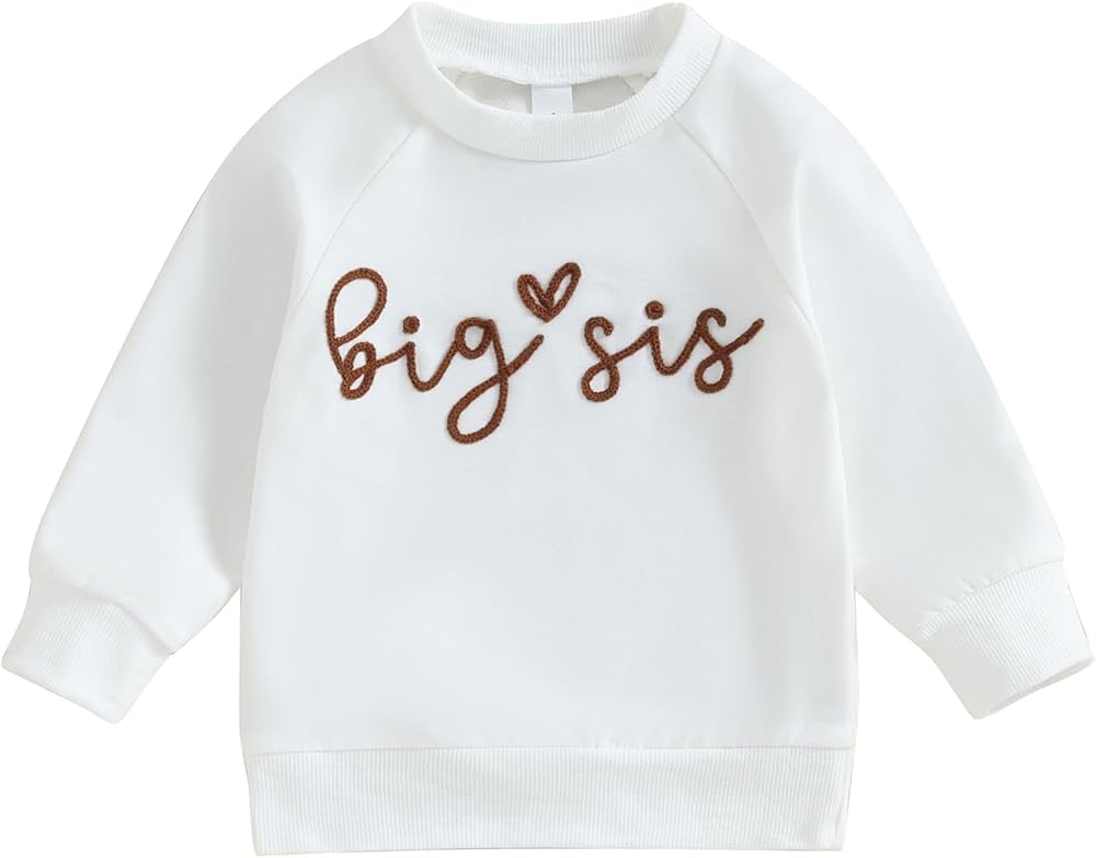 【Design】: Matching sibling outfits, big sister matching outfits, big sis sweatshirt, celebrate the special bond between siblings with our beautifully embroidery ''Big Sis'' motif, adding a touch of cuteness and charm to this toddler girl sweatshirt. Let your little one proudly show off their new role!