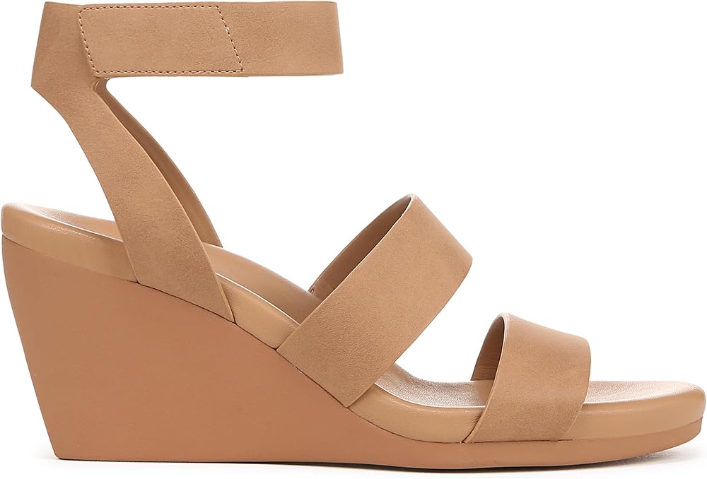 The perfect blend of comfort and height: sandals with a wedge heel. This lightweight strappy sandal is everything you need (and more). Wedge sandal with a strappy design. Synthetic upper with an open toe. Adjustable hook-and-loop closure. Contour+ Comfort technology for a premium fit and all-day comfort experience. 3/4 inch platform, 2 3/4 inch wedge heel. Consciously packaged: 100% of our shoe boxes are made of 80% recycled paper + soy-based ink. Upper, upper lining and footbed lining crafted from partially recycled materials. WHY YOU'LL LOVE IT: Forever elegant silhouettes with all day wearability, available in an inclusive range of sizes and widths. Designed to the contours of a woman's foot. The Beautiful Fit. Since 1927.