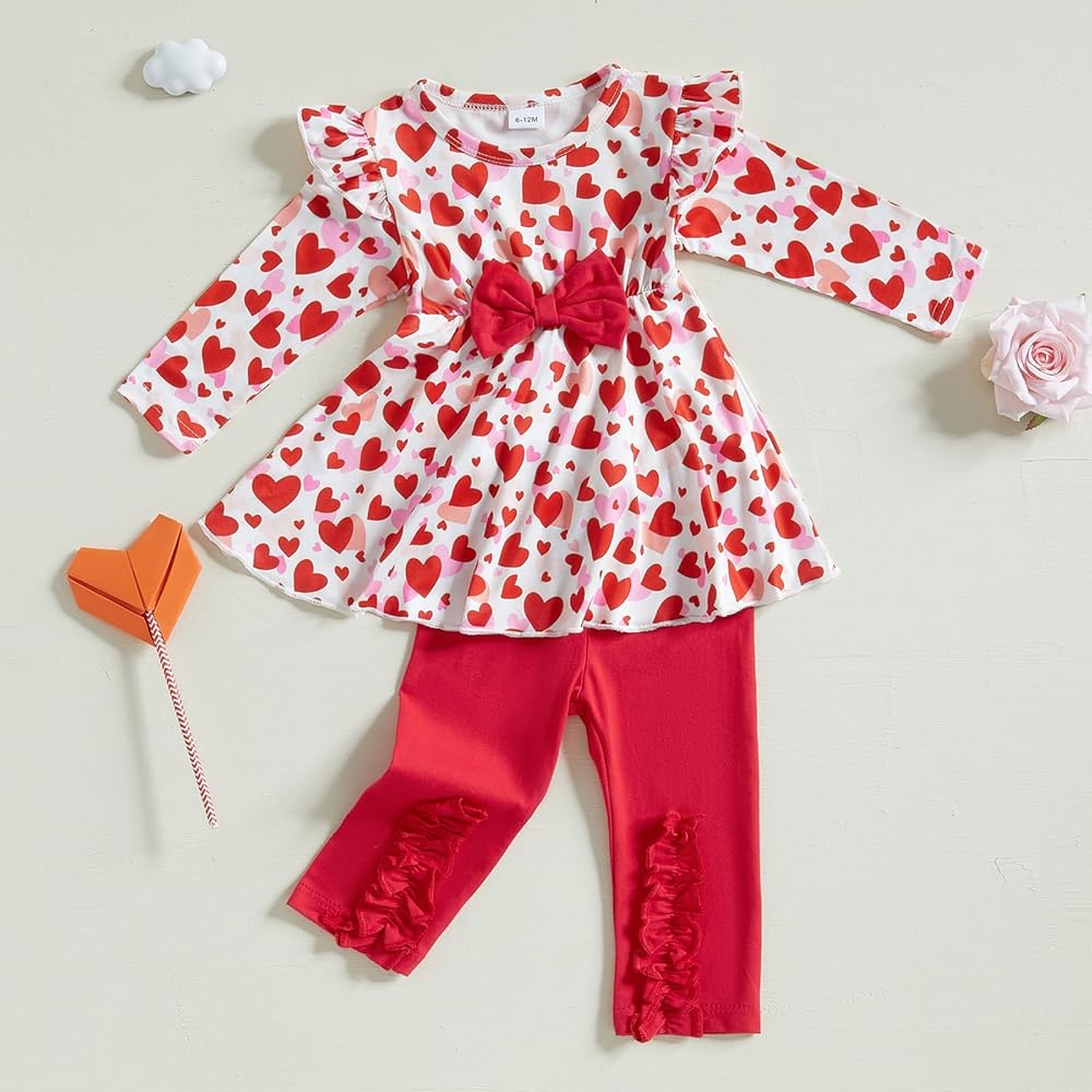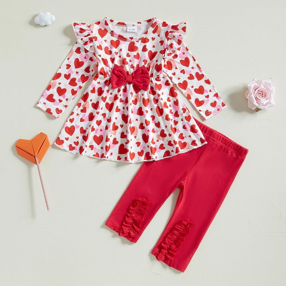 💖Material: Baby girl valentine's day outfits, valentines day baby girl outfit, baby girl valentines day outfit is made of high quality cotton blend, tops: 95% polyester and 5% elastane, pants: 95% cotton and 5% elastane, soft and comfortable, toddler girl valentines day outfit, comfortable and breathable for your baby. Best Valentine's Day gift for your girls.