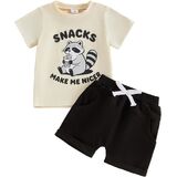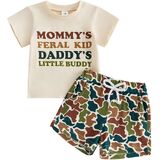 Feature: Baby boy summer clothes, letter print. Short sleeve, crew neck, t-shirt tops. Elastic waistband, jogger shorts. Toddler boy clothing set