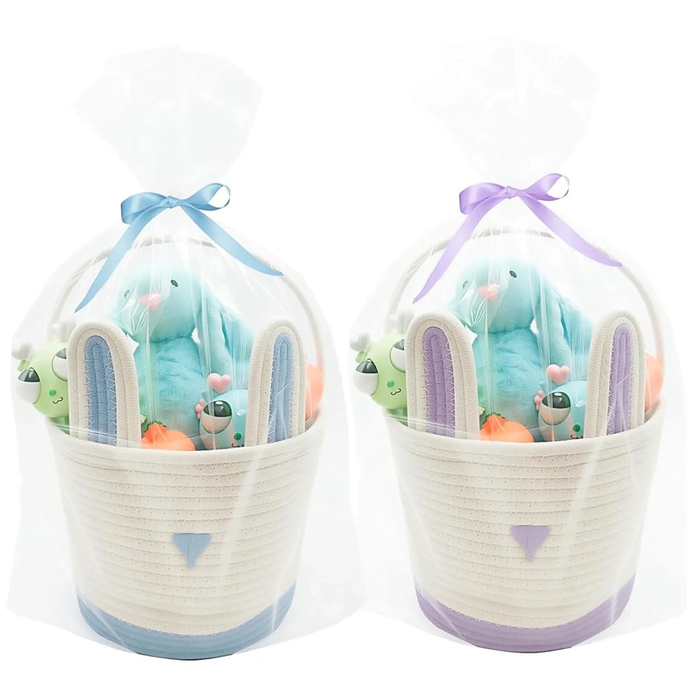 【Easter Baskets for Gifts Empty】Whether for egg hunts or as a thoughtful gift, this basket is a versatile choice. It comes prepped for gifting, wrapped in a ribbon and cellophane bag—ideal for children, friends, or family members.