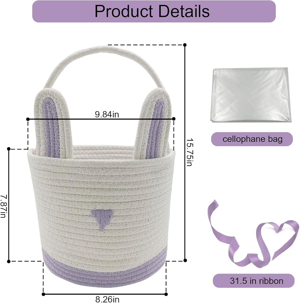 【Durable and Long-Lasting】Crafted from soft yet sturdy woven cotton rope, this basket is built to last. It's odor-free, fade-resistant, and gentle on hands. Designed with durability in mind, you can use it year after year for Easter celebrations and beyond.