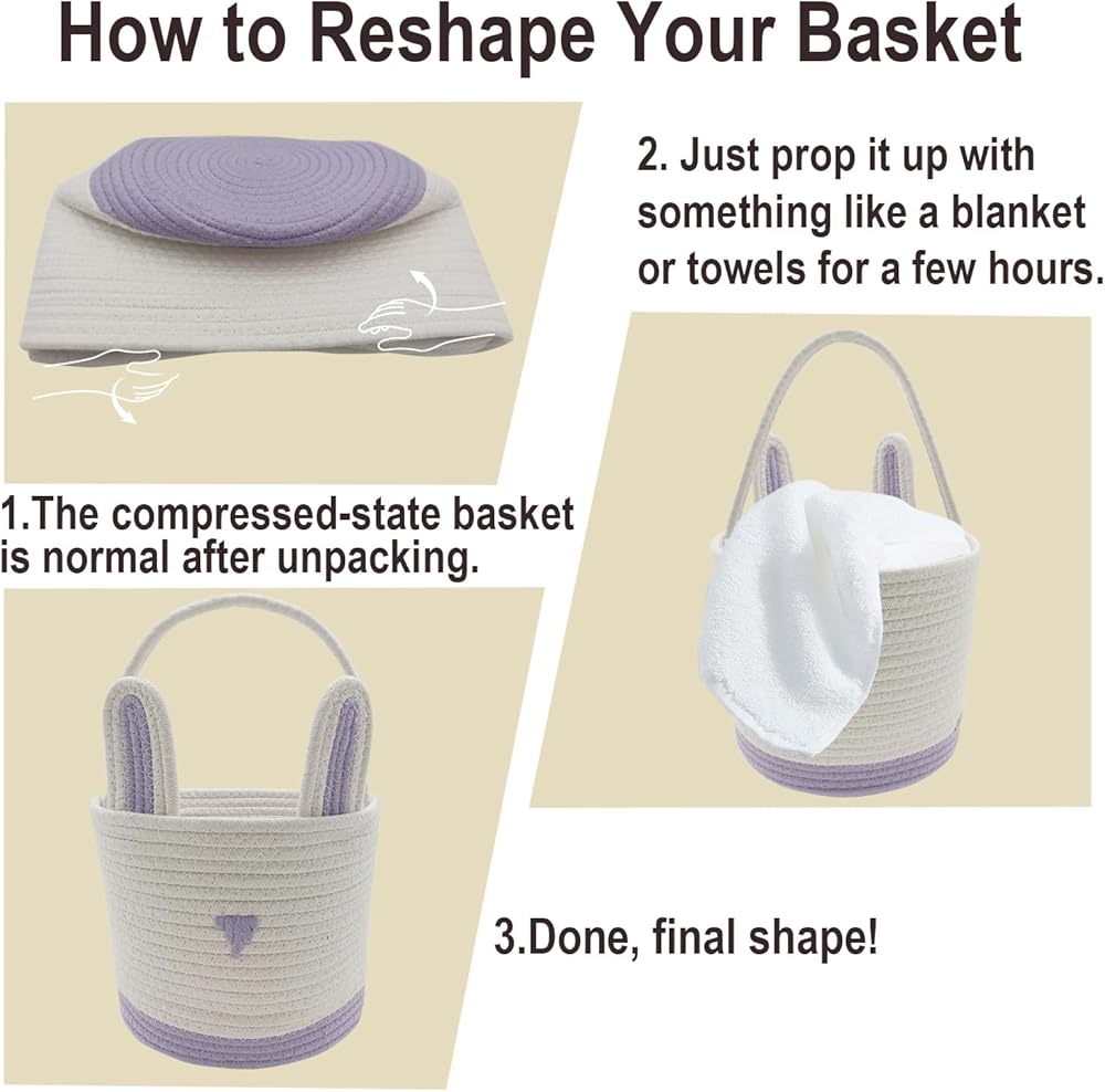 【Bunny Ears Design】Add a touch of Easter magic with this basket's cute sewn-on bunny ears! Available in a variety of vibrant colors—yellow, blue, purple, green, gray, and pink—this basket is sure to delight kids and bring festive cheer to your home.