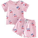 Features: Toddler girl summer outfit; Full bows print; short-sleeved crew neck t shirt tees tops, matching with elastic waist casual shorts; Loose and sweet style; retro ribbon toddler girl outfit, toddler girl clothes, cute baby clothes for girls