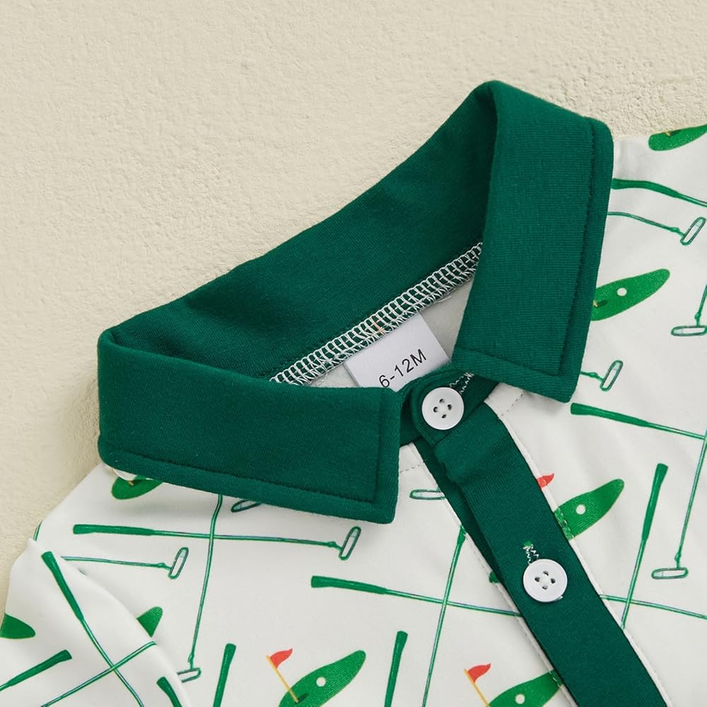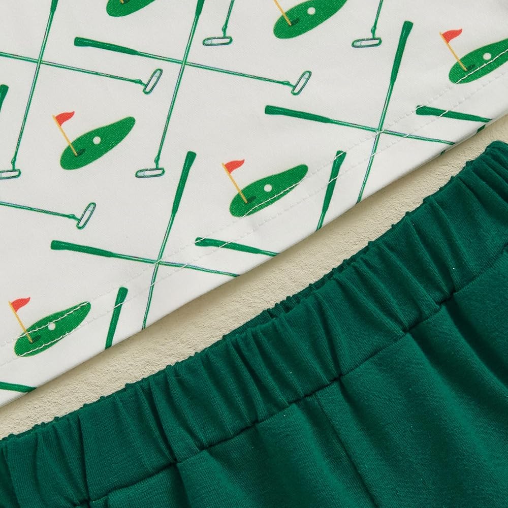 Toddler Baby Boy Summer Outfits Golf Pattern Button Turn Down Collar Short Sleeve Shirt with Shorts 2 Pcs Set