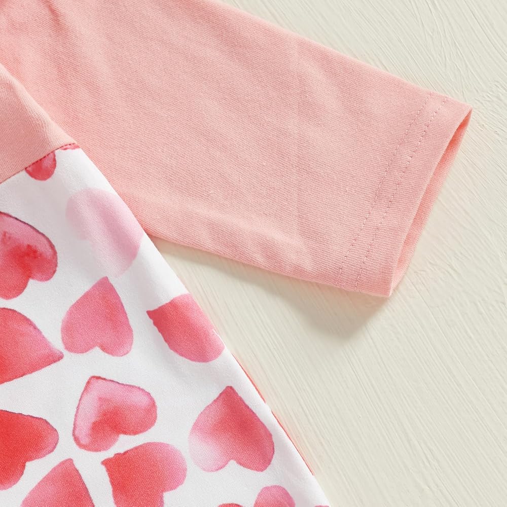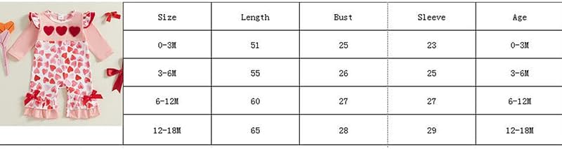 Features: newborn baby girls Valentines Day jumpsuit features round neck, long sleeve Valentines Day onesie, layered ruffle trim Cuffs and ankles romper, Paired with letter Valentines Day Embroidery Heart print patterns, super cute Valentines Day gift for baby girls