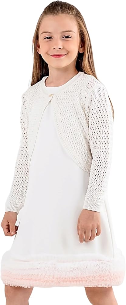 🧥Baby Girl Boleros -Girl Sweaters in Sizes 6 months to 5T: Elevate your child's style with our cozy and stylish collection of lightweight boleros. Specially designed for sizes ranging from 6 months to 5T, these elegant long-sleeve shrugs feature an eyelet hem design, ensuring both warmth and sophistication. Exclusive designs, high-quality tailoring, and soft fabrics make these boleros the perfect addition to any dress, promising class and comfort in every wear.