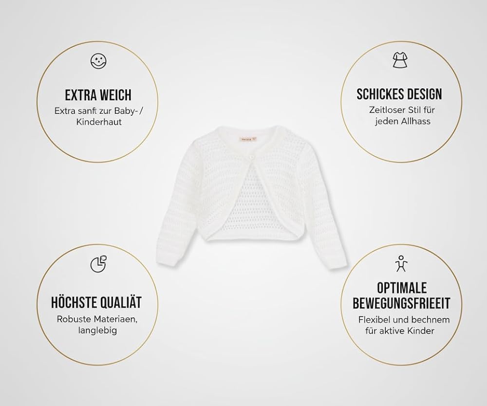 🧵 High-Quality Materials : Elevate Your Little One's Wardrobe with Unmatched Quality: Our collection is crafted from top-tier materials, ensuring each piece, from white boleros to knit cardigans, offers the perfect blend of softness, durability, and timeless style. Dress your child in premium comfort and charm with our high-quality materials, setting the standard for cozy and chic fashion.