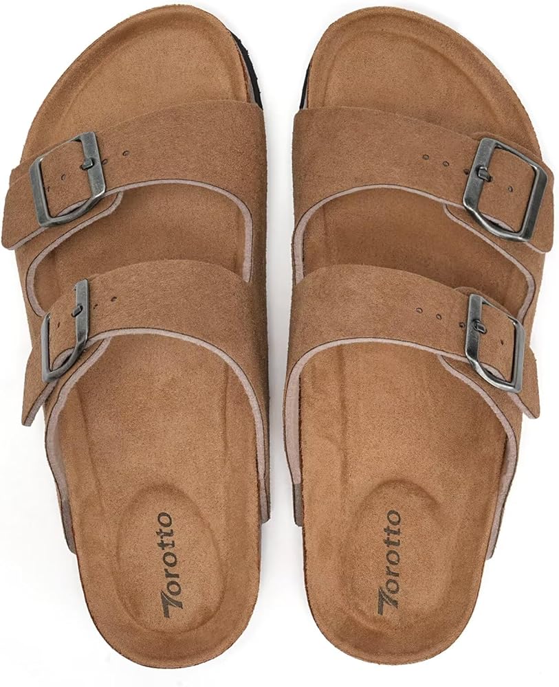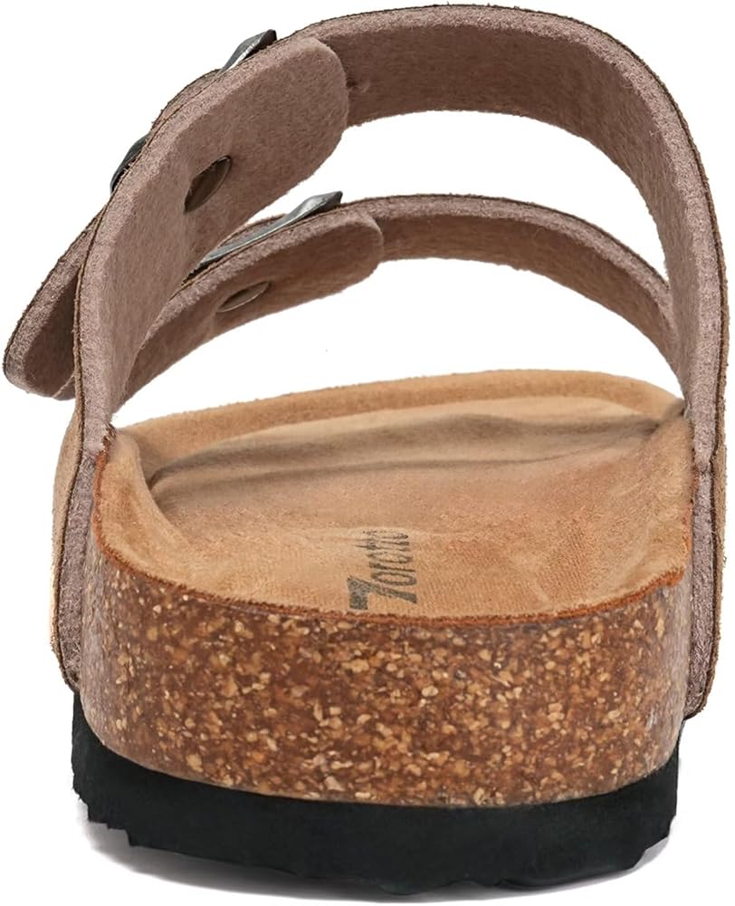Torotto Womens Slides with Cork Footbed Open Toe Adjustable Webbing Flat Sandals for Walking | Beach | Indoor