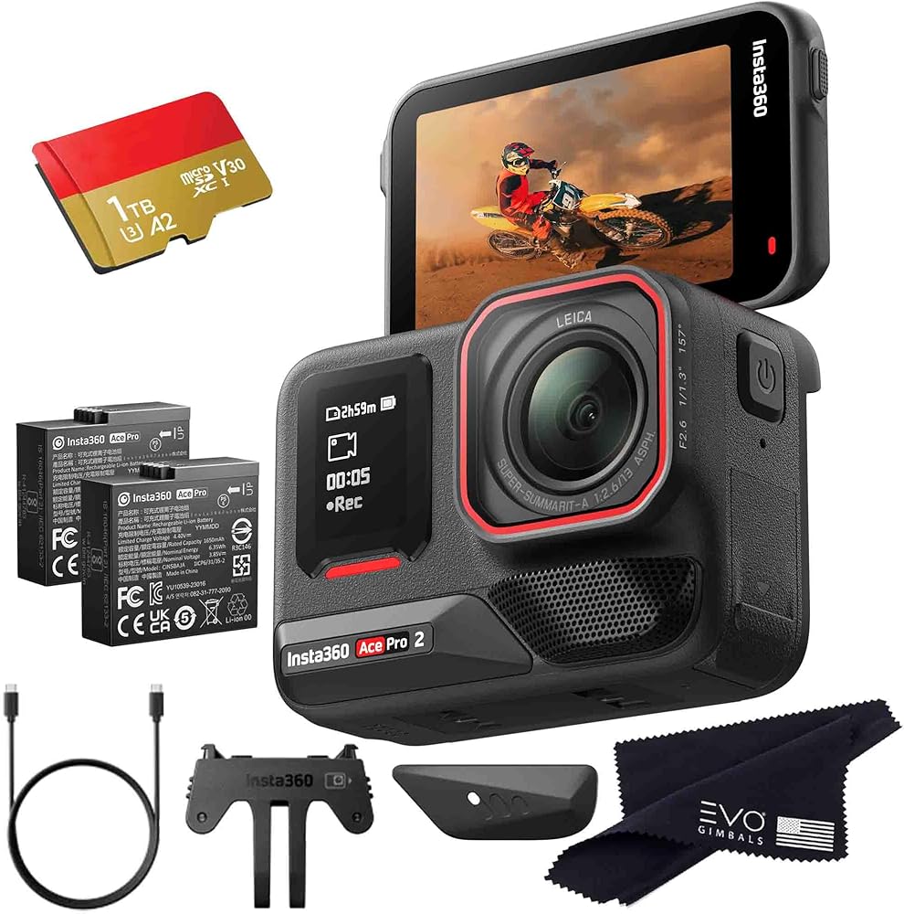 Insta360 Ace Pro 2-8K Waterproof Action Camera Co-Engineered with Leica, Flagship 1/1.3" Sensor, 8K30fps, 4K60fps, 2.5" Flip Screen, AI Noise Reduction, Long Lasting Battery (1TB)