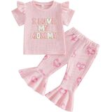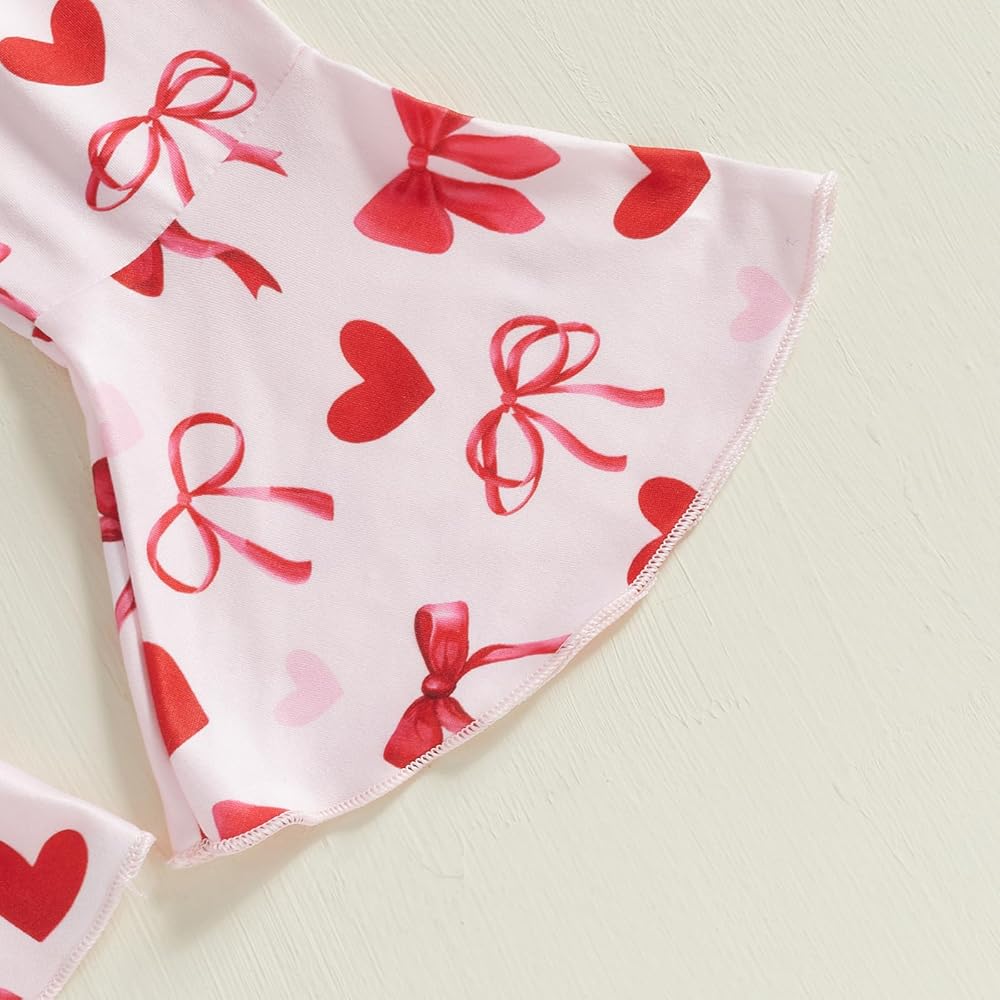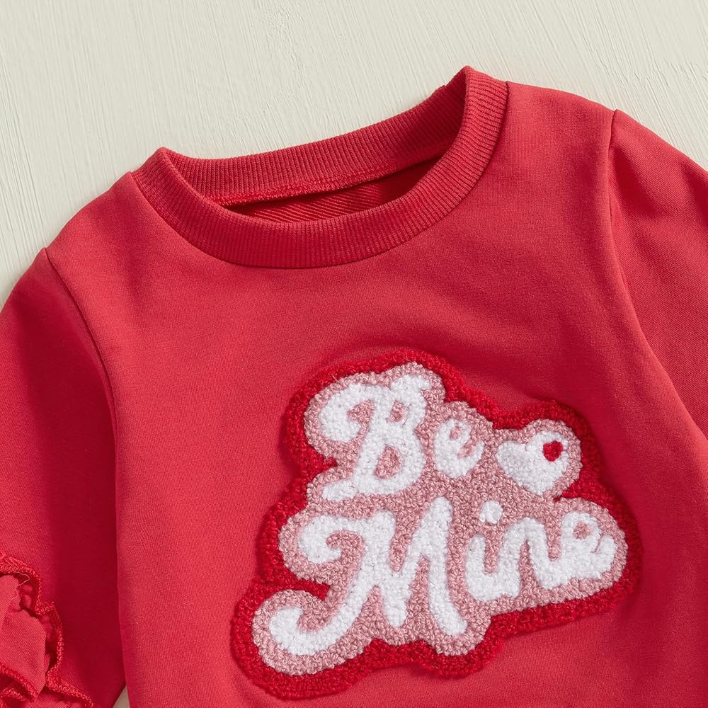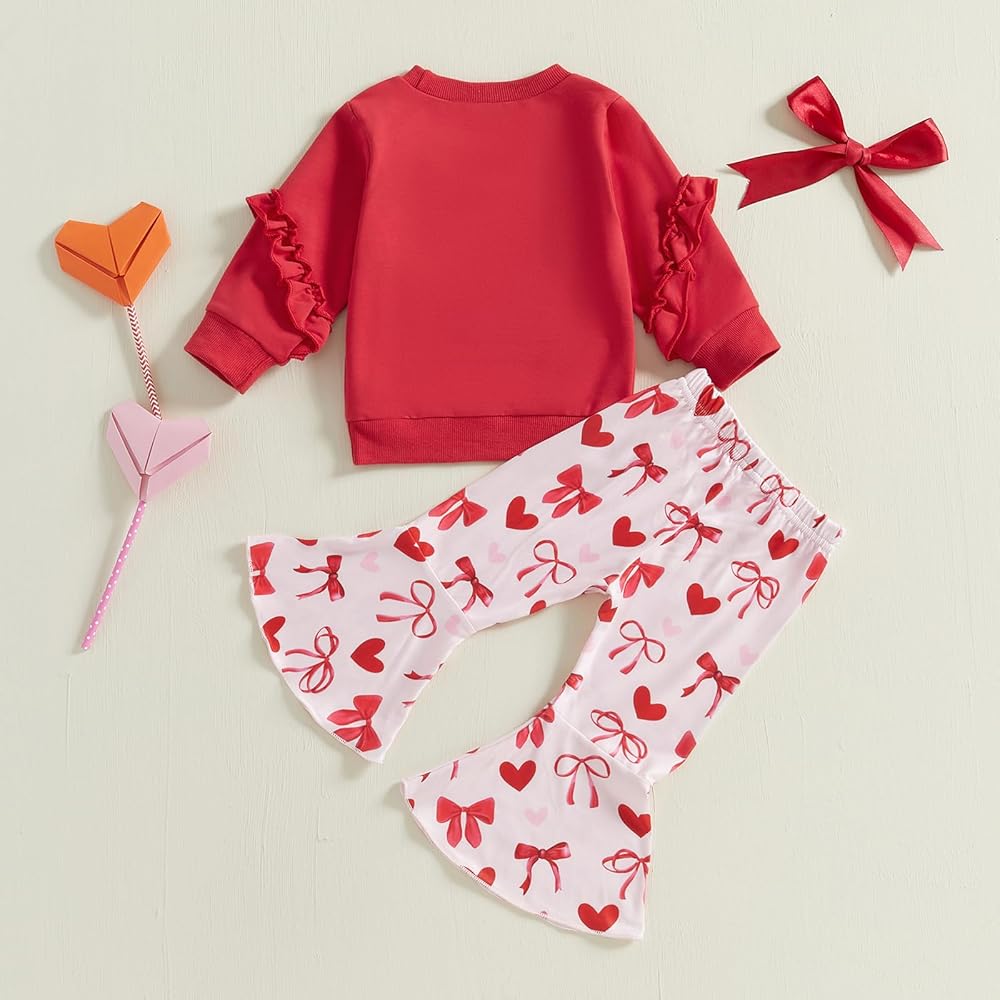 Toddler Girl Valentine's Day Outfits Long Sleeve Ruffle Sweatshirt + Flare Pants Set Toddler Clothes