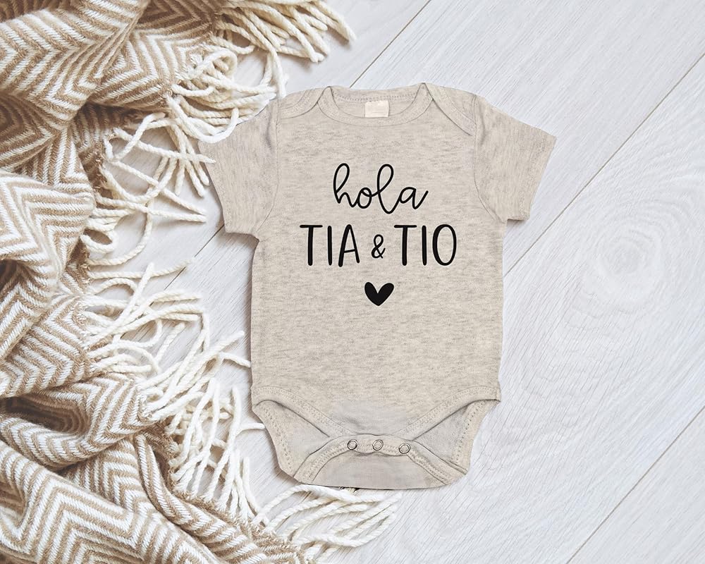 If you're planning a special baby announcement for that wonderful sister and brother or best friends in your life then our Hola Tia & Tio bodysuit is a must have addition to your gift!