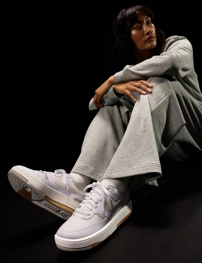 Nike Gamma Force women's shoes layer over layer for dimensional style - a force to be reckoned with. These shoes offer comfort and versatility and are rooted in traditional basketball culture. The materials on the collar pay tribute to vintage sports and the subtle platform enhances your look. The Gamma Force forges its own legacy: court style that can be worn all day, no matter where you are on the go. Different layers of mesh as well as suede and smooth leather give any outfit a robust, textured look. The subtle platform look gives you just the right height. The speckled rubber outsole with Nike Grind includes at least 5% recycled materials. Rubber midsole, rubber outsole