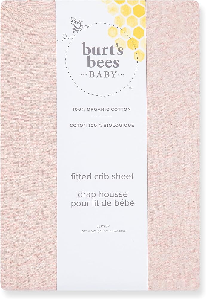 Embrace the comfort of the Burt's Bees Baby Fitted Crib Sheet, a nursery and baby registry gift essential. Crafted with care from 100% organic GOTS-certified* cotton, this sheet is a sanctuary of comfort for your baby's delicate skin. Combed and ring-sun, these sheets are super soft, durable, and breathable, promoting restful sleep for your baby. Our BeeSnug 360 design ensures a snug fit for standard cribs and toddler mattresses, making it a versatile choice for any nursery. These easy-care, machine-washable sheets get softer with every wash while the patterns remain vibrant. Available in a variety of adorable hand painted watercolor prints suitable for baby boys and baby girls, our sheets not only complement your nursery décor but also serve as a cherished essential for any parent. From floral patterns to animal and geometric patterns, you can mix and match to find the perfect crib sheet to match your nursery theme. Our classic jersey knit fabric gives your little bee the same feeling you get when you slip into your favorite t-shirt. It is warmer to the touch than woven sheets, providing a smoother transition from snuggling in your arms to safely sleeping in their crib. *GOTS Certified by CU 831717