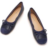 Soft toe slip-on shoes featuring a satin and suede mix on the toe, a charming knot detail, and intricate stitch cutting for a stylish touch