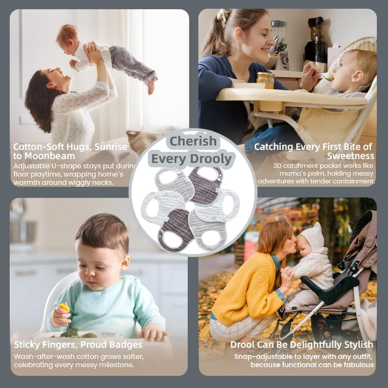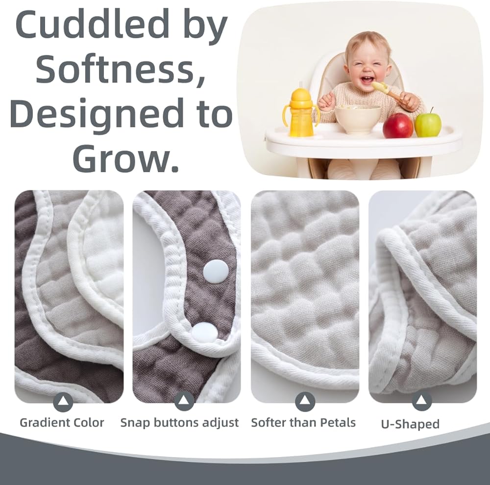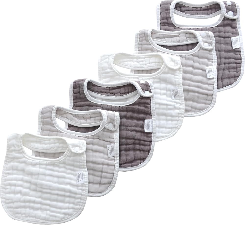 VERSATILE DESIGN: These soft muslin cotton bibs and burp cloths are perfect for drooling, teething, and feeding your baby.