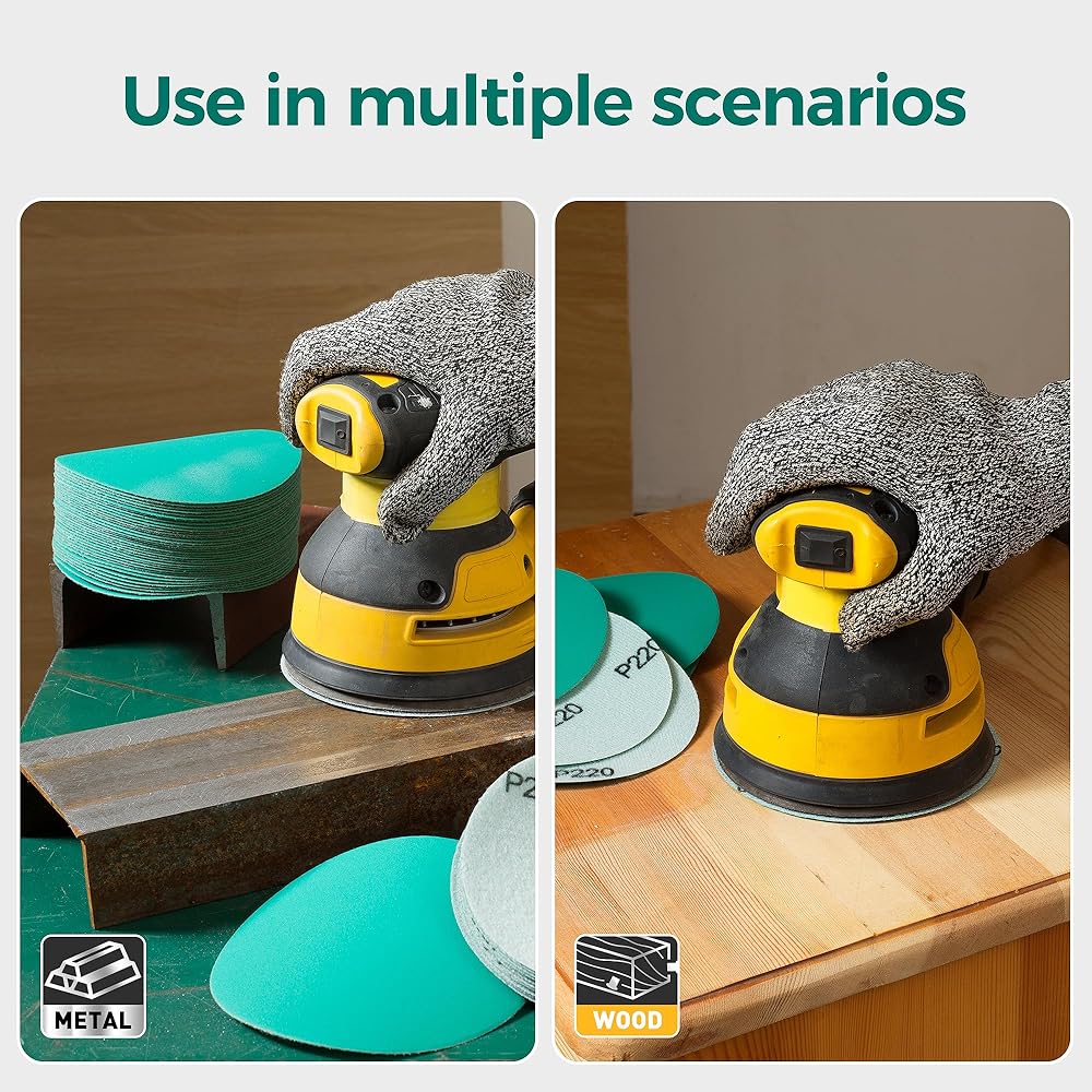 These 5-inch non-porous Assortment - 80, 120, 150, 180, 220 Grit (10 of Each) grit green sandpaper sheets are suitable for a variety of application scenarios, including but not limited to.