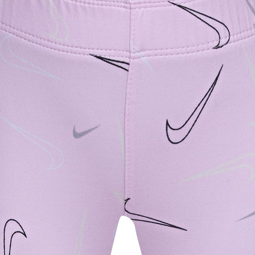 Swooshfetti Leggings (Toddler). Low-rise. Elastic waistband. All-over print. 7/8 length. Stretch jersey. 92% polyester, 8% elastane. Machine wash.