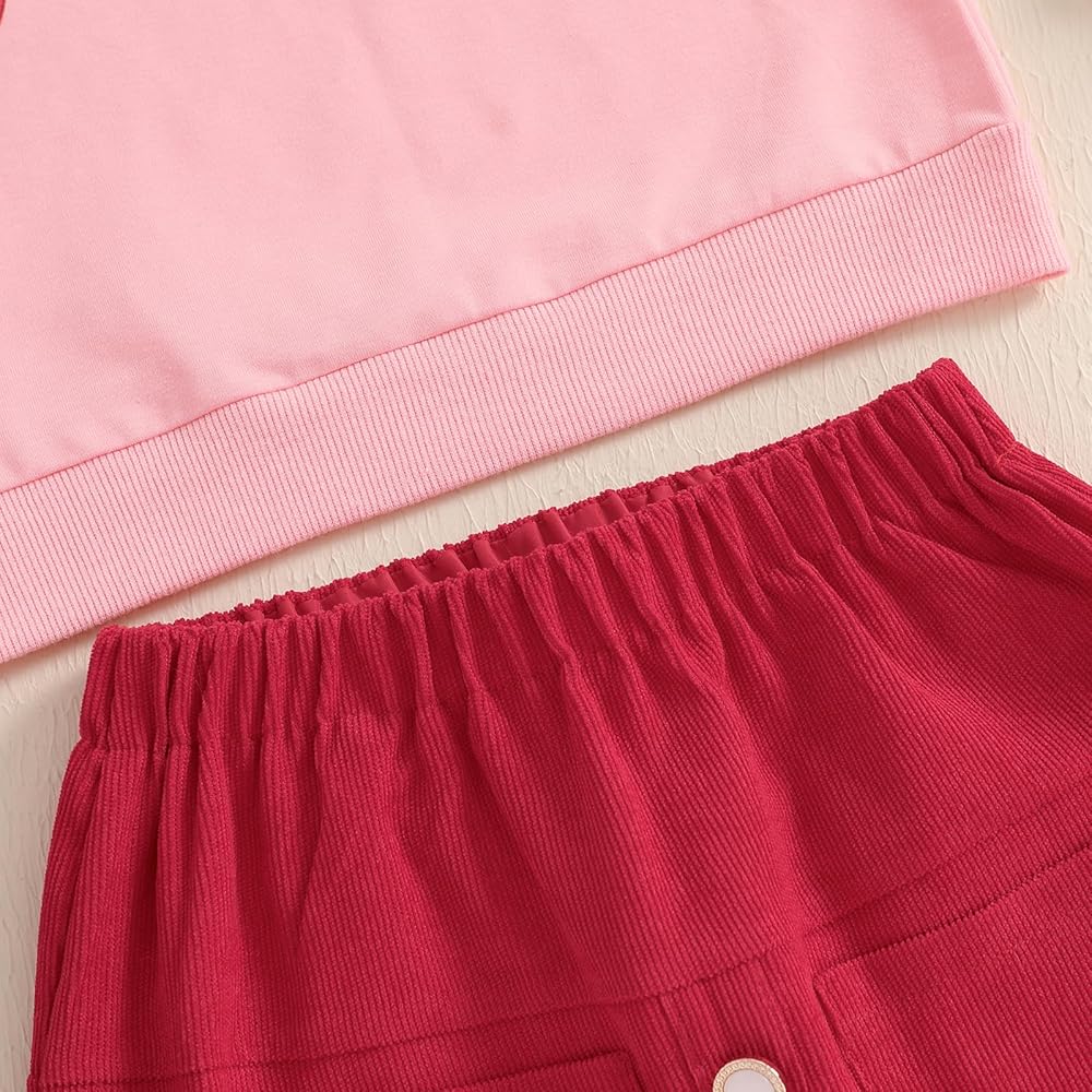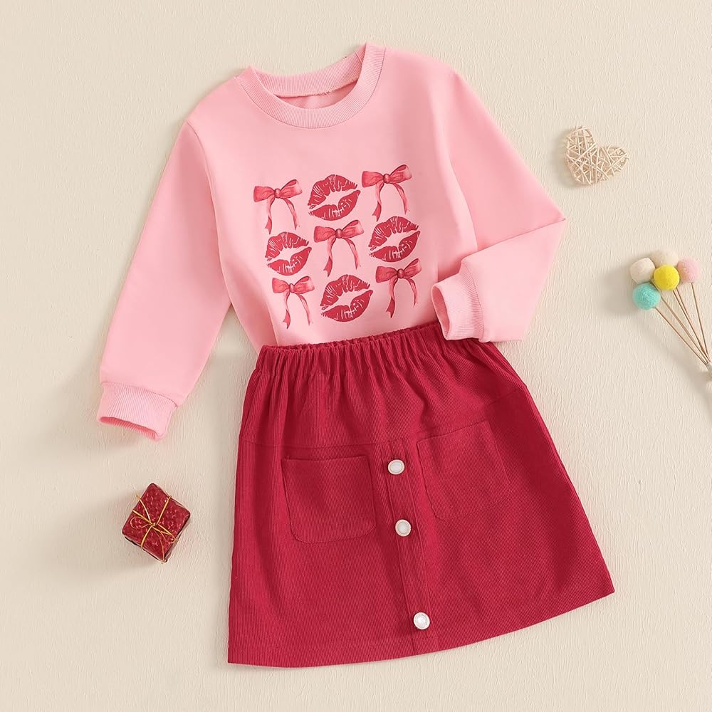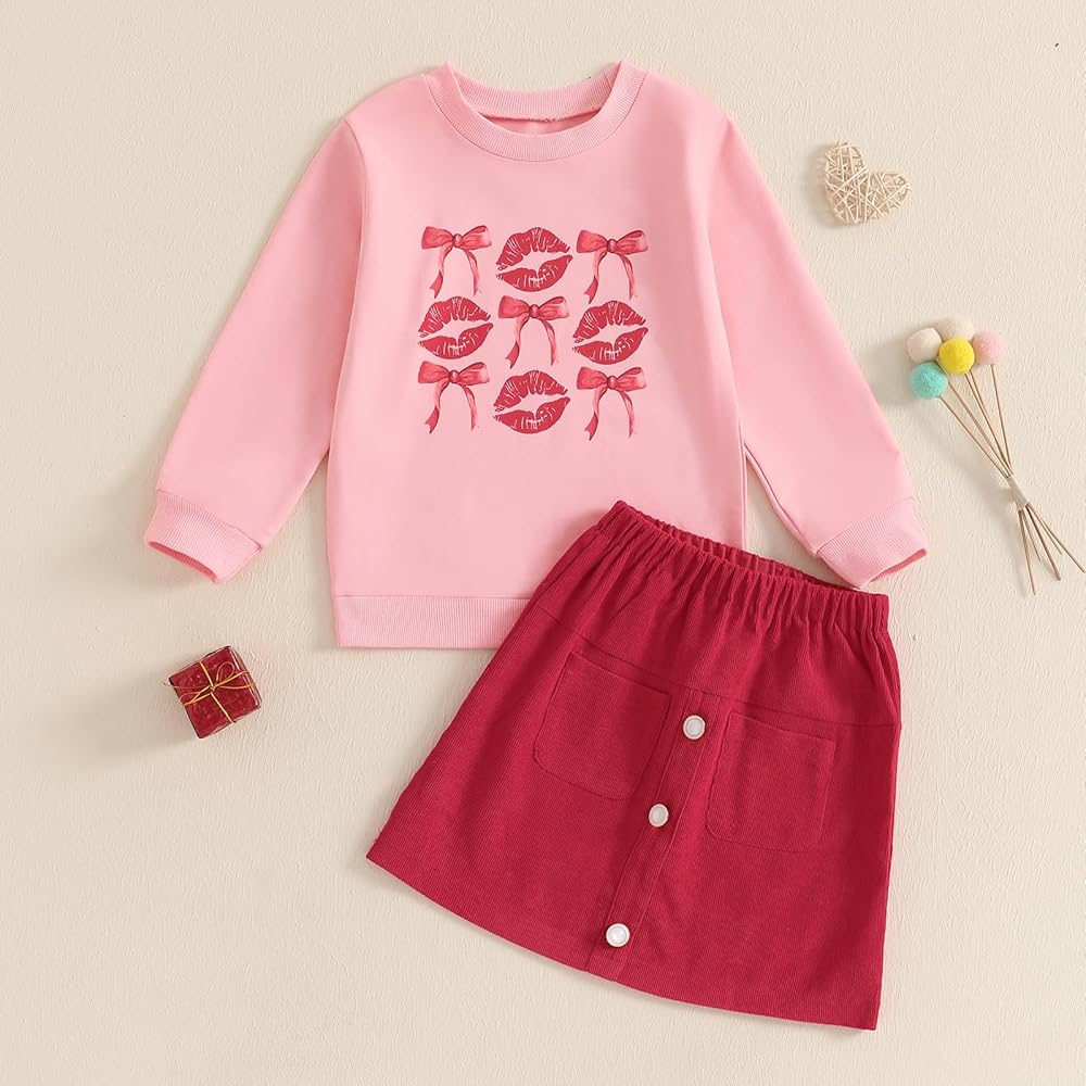 Little Girl Valentines Day Outfit Letter Heart Long Sleeve Sweatshirt Plush Ball A-line Skirt 2 Piece Set