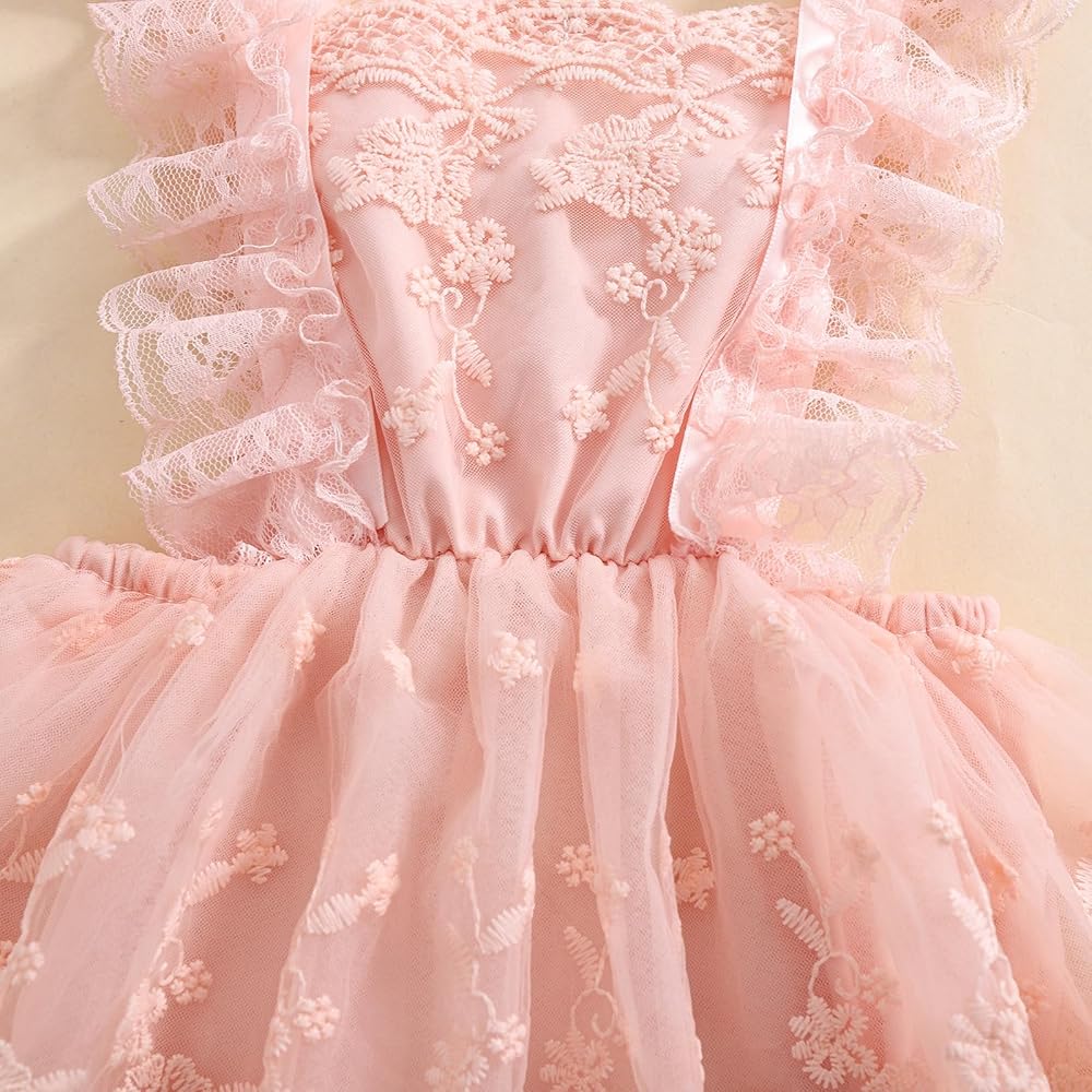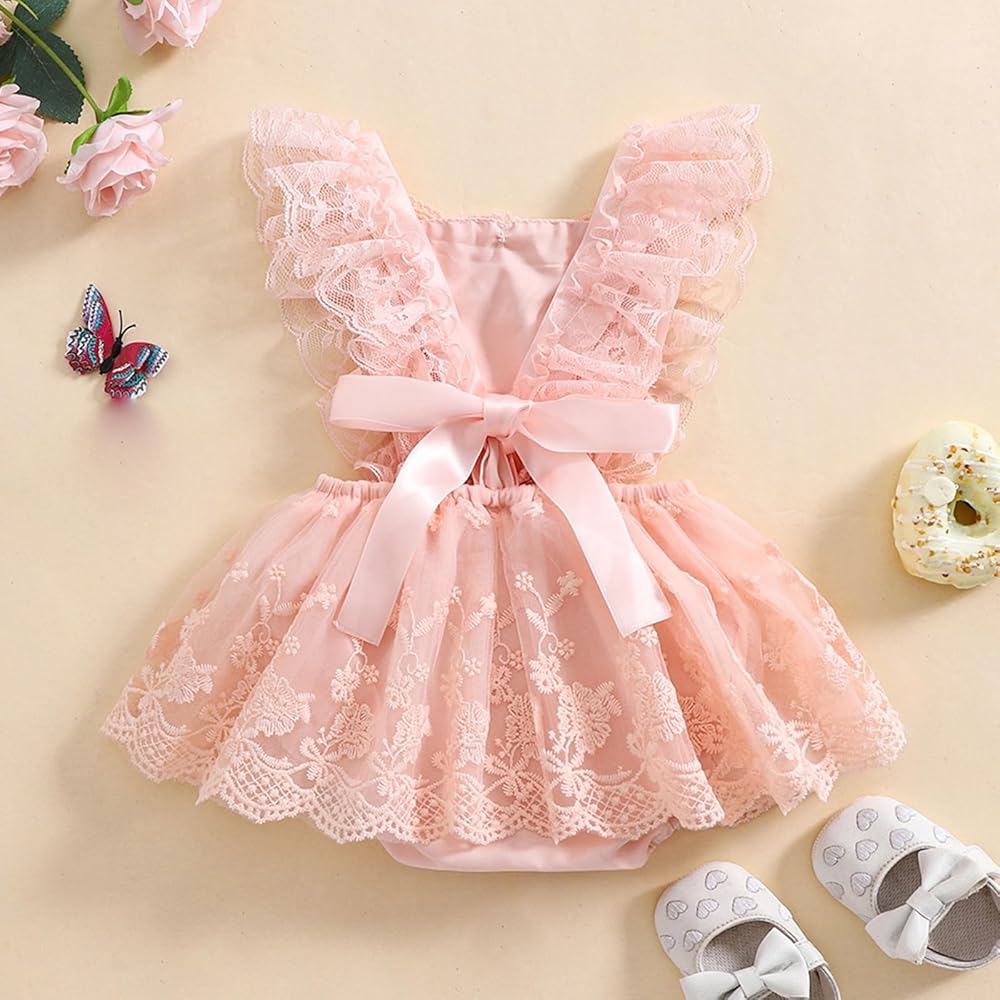 Style: Baby girl romper dress, with a casual and cute style, suitable for all baby girls.lace backless tutu one-piece rompers for baby girls, ruffle fl ysleeve design adds more cuteness, elaborate floral embroidery lace tutu romper exquisite workmanship