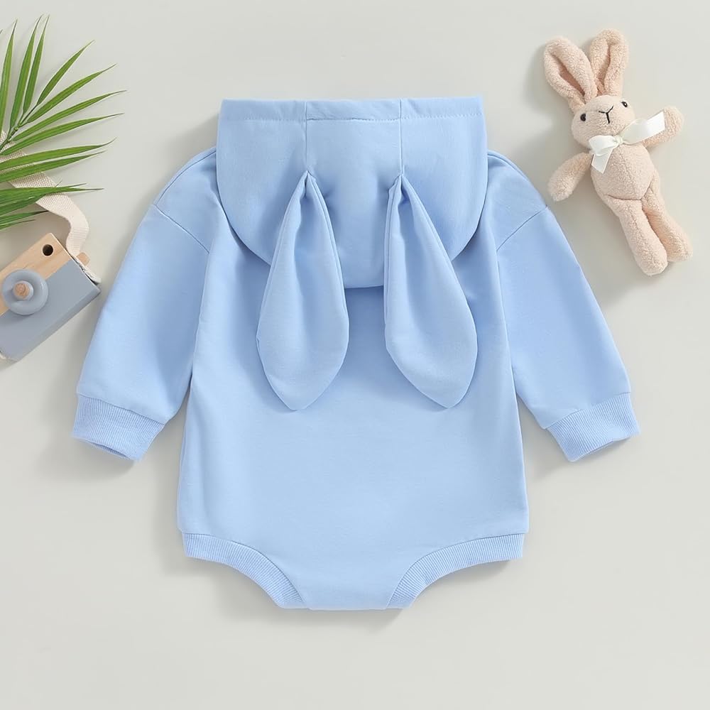 Feature: Newborn baby romper with hood & long bunny ears, long sleeve, my first easter letter print, ribbed cuffs, basic length; Baby hooded romper, easter baby girl onesie, snap closure for easy diaper changes, 1st easter baby boy outfit