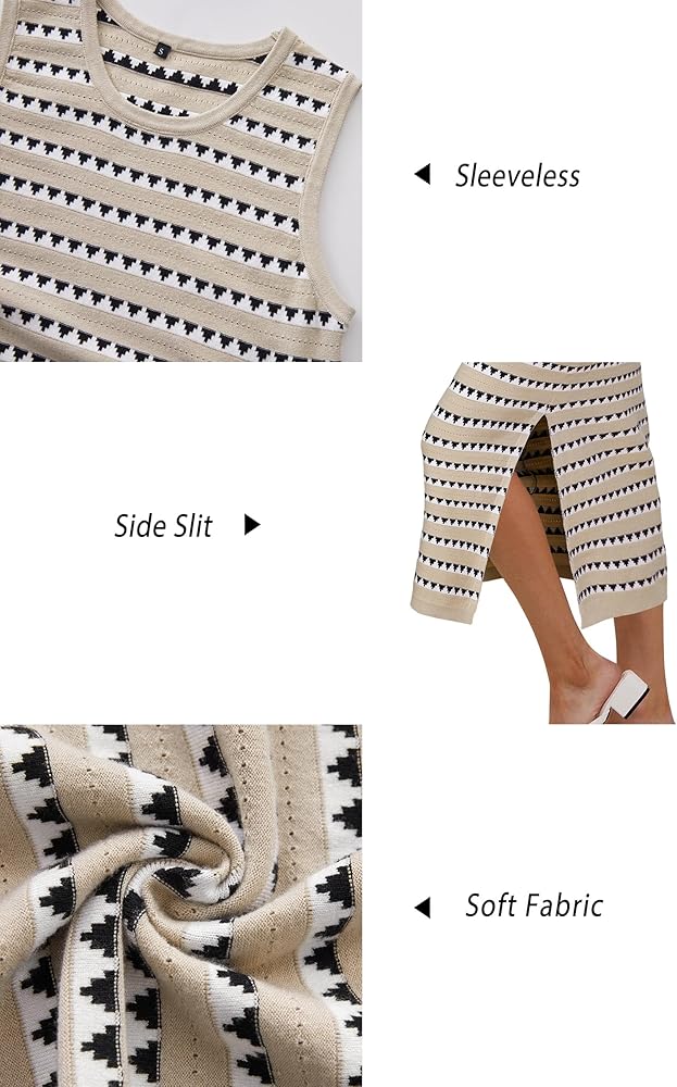 Features: Sleeveless, round neck, bodycon, trendy striped pattern, midi length, slim fit with one side slit, makes this sundress easy to dress up or down for special formal occasions or casual wear