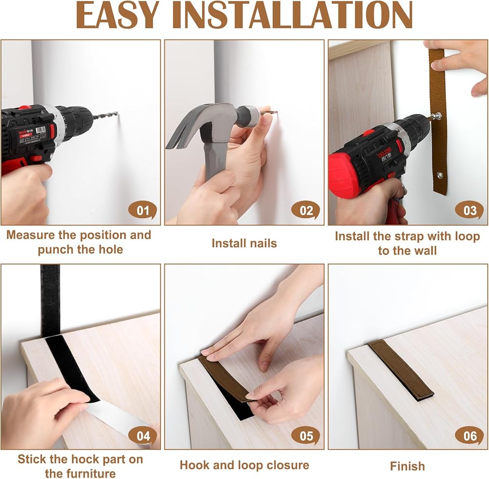 The furniture wall straps help to fix the furniture in your home, so that you do not need to worry about your pets easily pushing them down, reducing the occurrence of accidents.