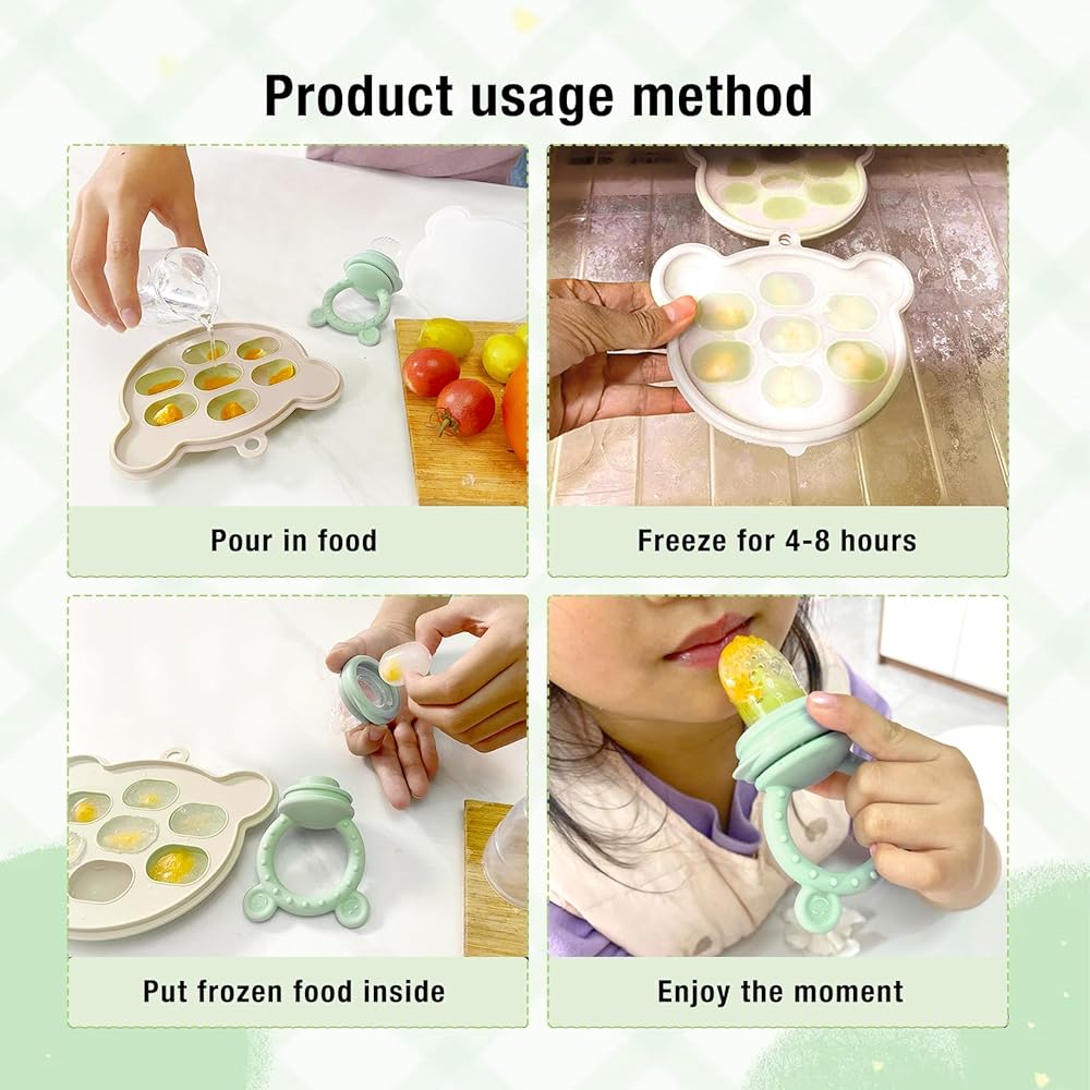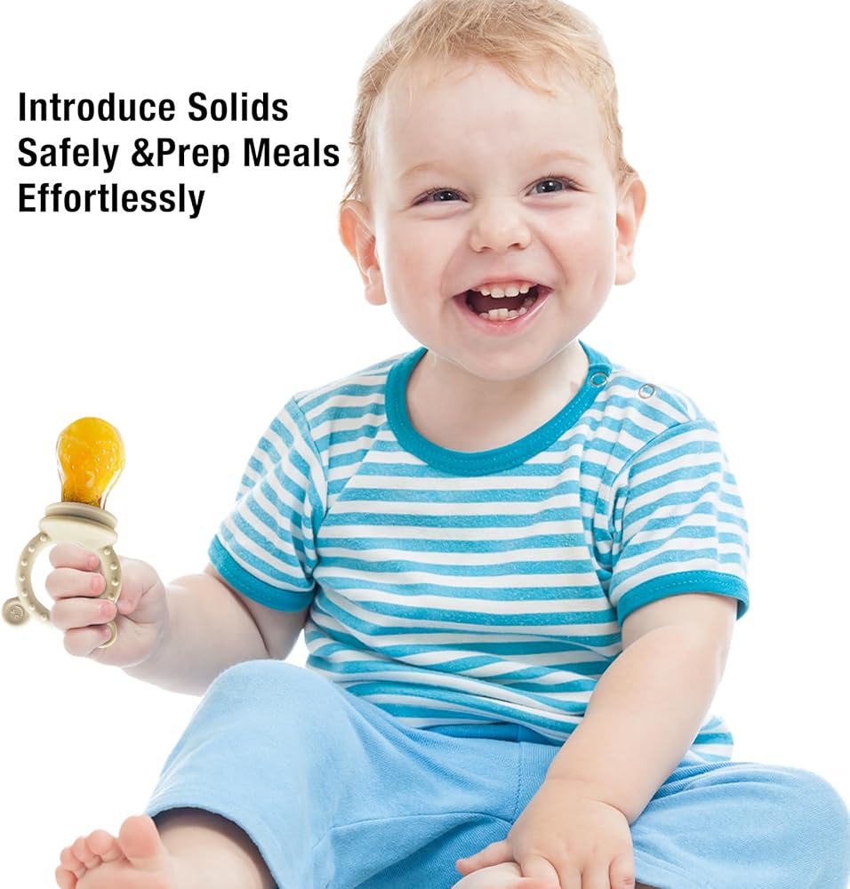 Introduce Solids Safely: The Baby Food Feeder by Lusy DM is the perfect tool for introducing solid foods to your baby. Its soft silicone food pouch features small 2mm holes that allow only tiny, easily digestible pieces to pass through, ensuring safe feeding. Whether it's frozen fruits, vegetables, meats, or breastmilk, your baby will delight in tasting, sucking, and chewing.