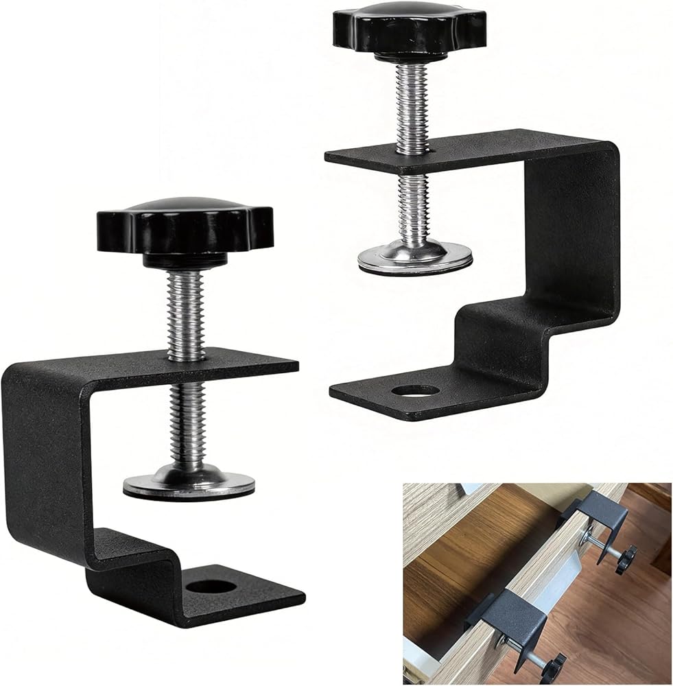 2Pcs Drawer Front Installation Clamps, Drawer Fixing Clips, Adjustable Drawer Face Clamp jig C Clamps, Easy and Stable Drawer Front Mounting Tool for Woodworking, Black