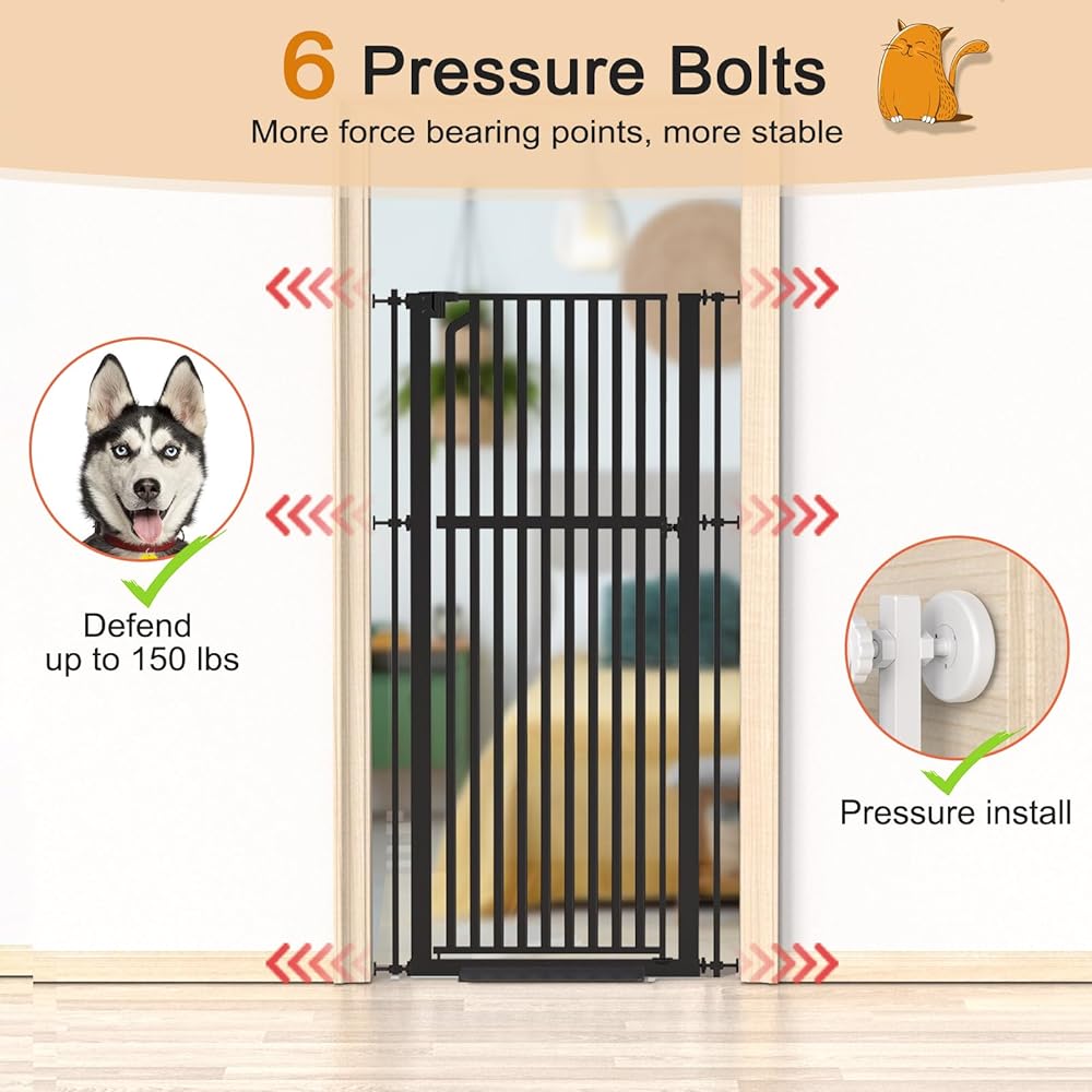 Senneny 63" Extra Tall Cat Gate Auto Close & One-Hand Open, No Drilling Pressure Mounted Kits and Wall Mounted Kits, Metal Pet Gate Fits Openings 29.5" to 33.4" Wide, Black