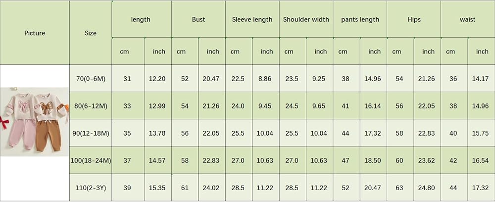 Size: Adorable toddler girl outfits fall 2pcs clothes set, sweater and sweat pants, baby girl pants set suitable for 0-6 Months girls clothes, 6-12 Months girls outfit, 12-18 Months girls clothes, 18-24 Months girl outfit, 2-3 Years girl outfits