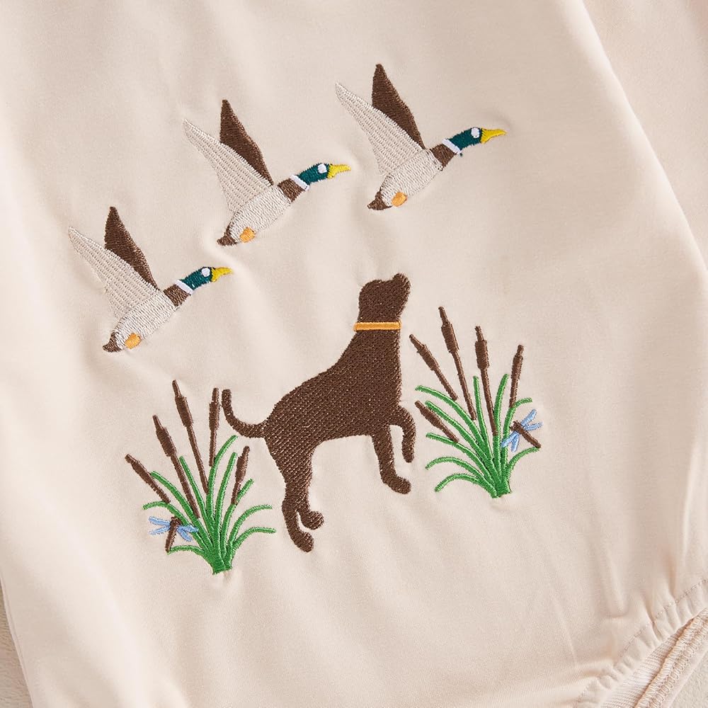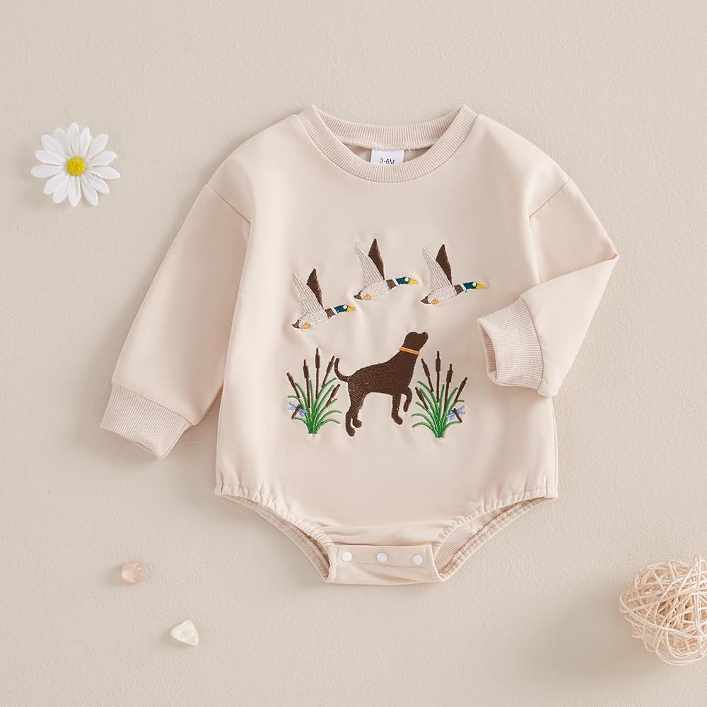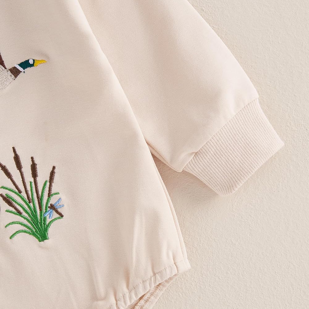 Baby Romper, Long Sleeve Crew Neck Embroidery Duck Fall Bodysuit Clothes for Girls Boys