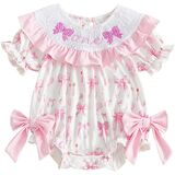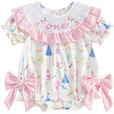 Baby Girl 1st Birthday Outfit Sleeveless Embroidery Smocked Romper Bodysuit First 1 Year Old Smash Cake Clothes