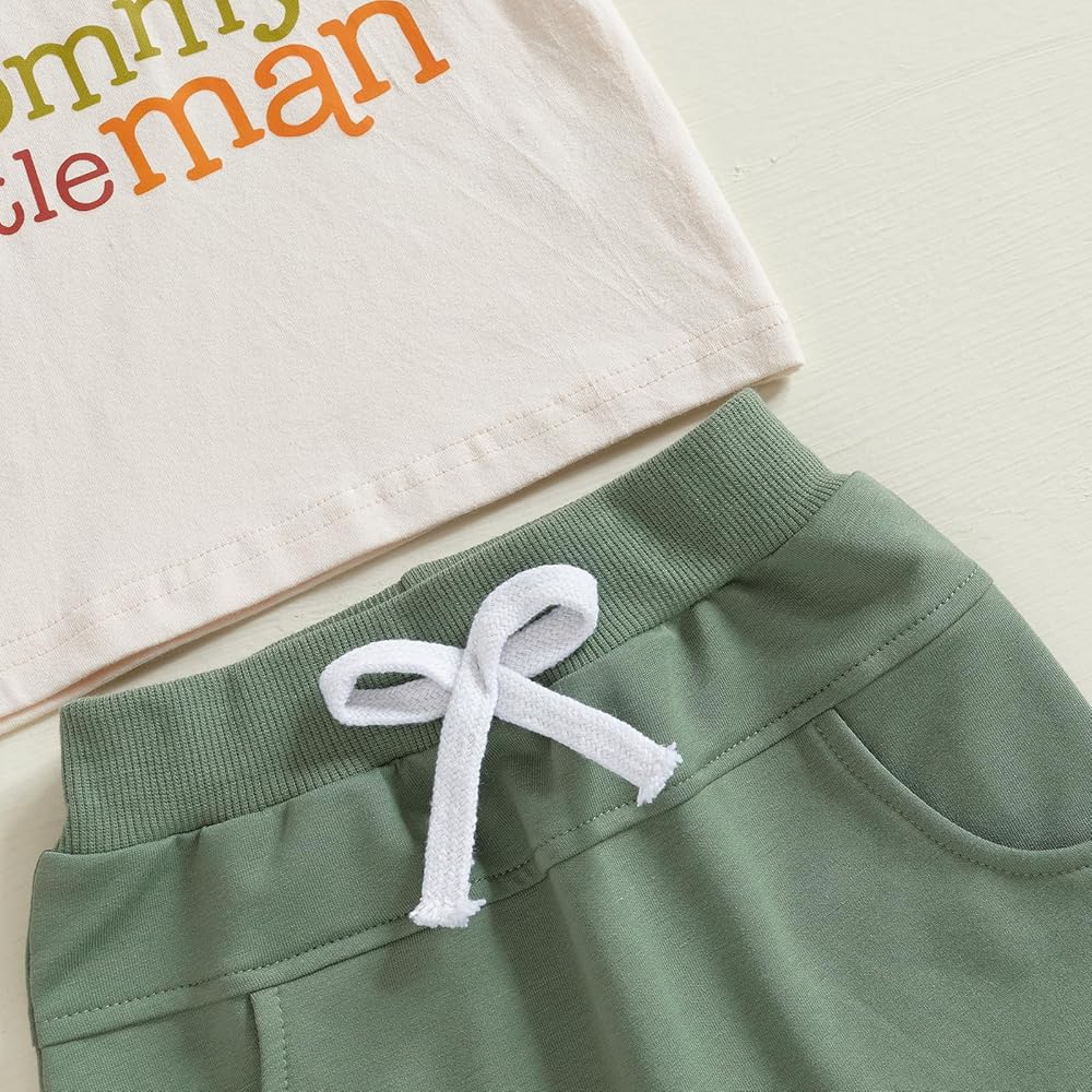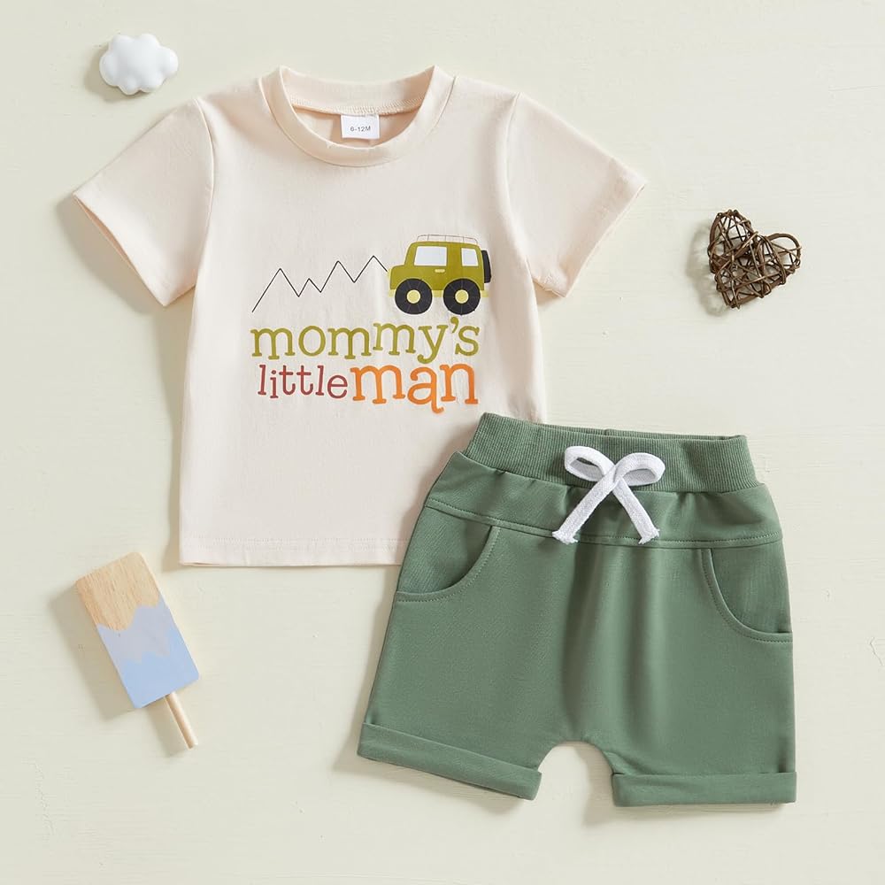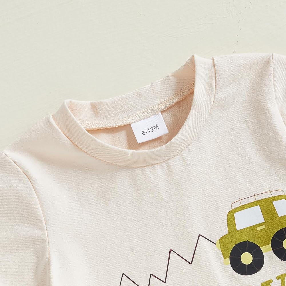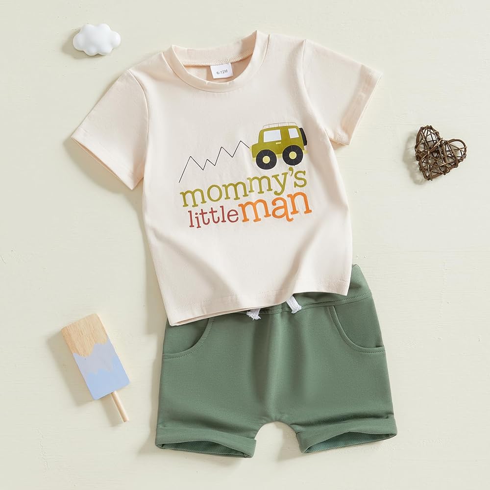 Stylish Design: Featuring letter print t-shirt tops and stretch shorts,round neck, short sleeve, car and letter print tops and elastic waistband shorts with pockets,our toddler boy clothing set is both fashionable and practical for everyday wear